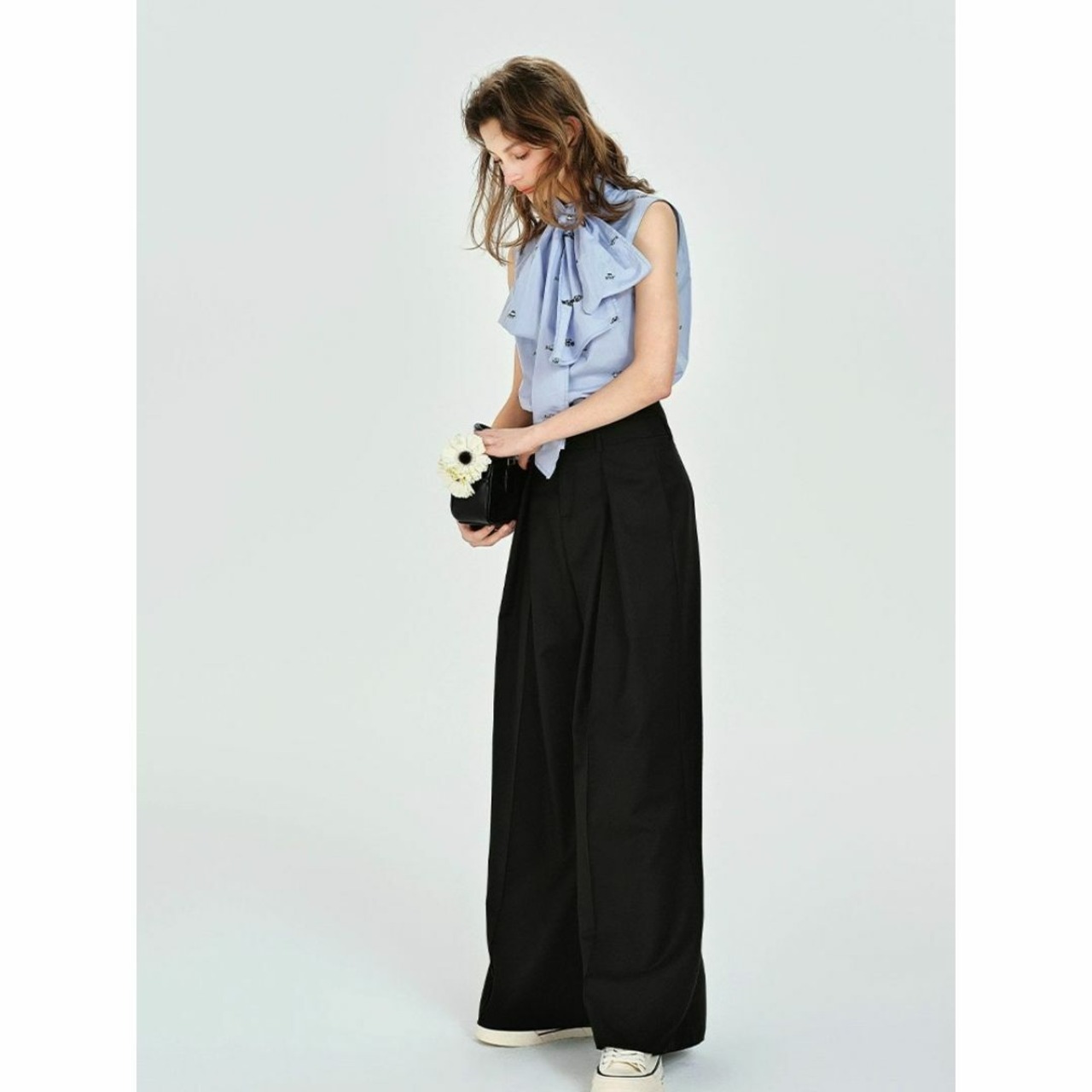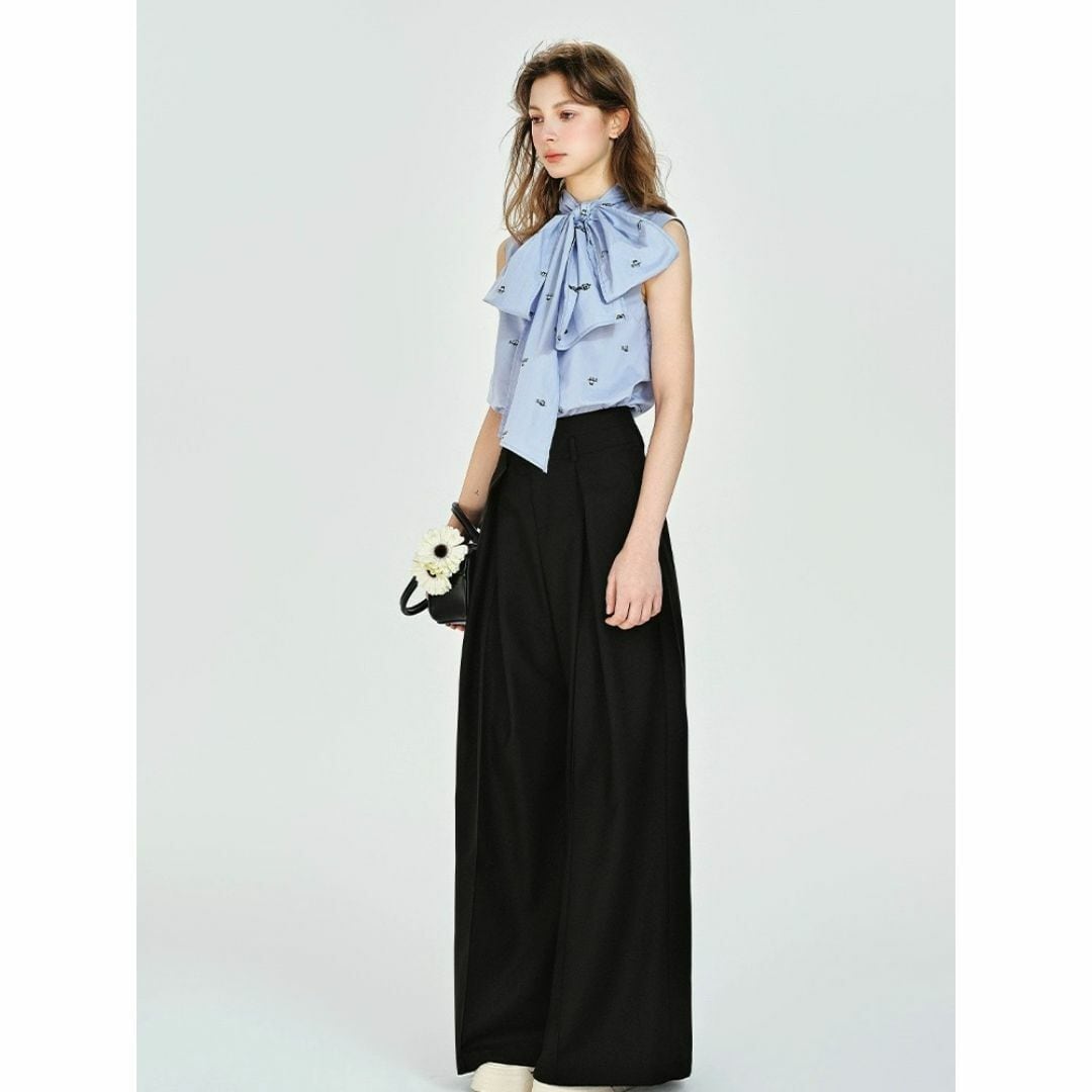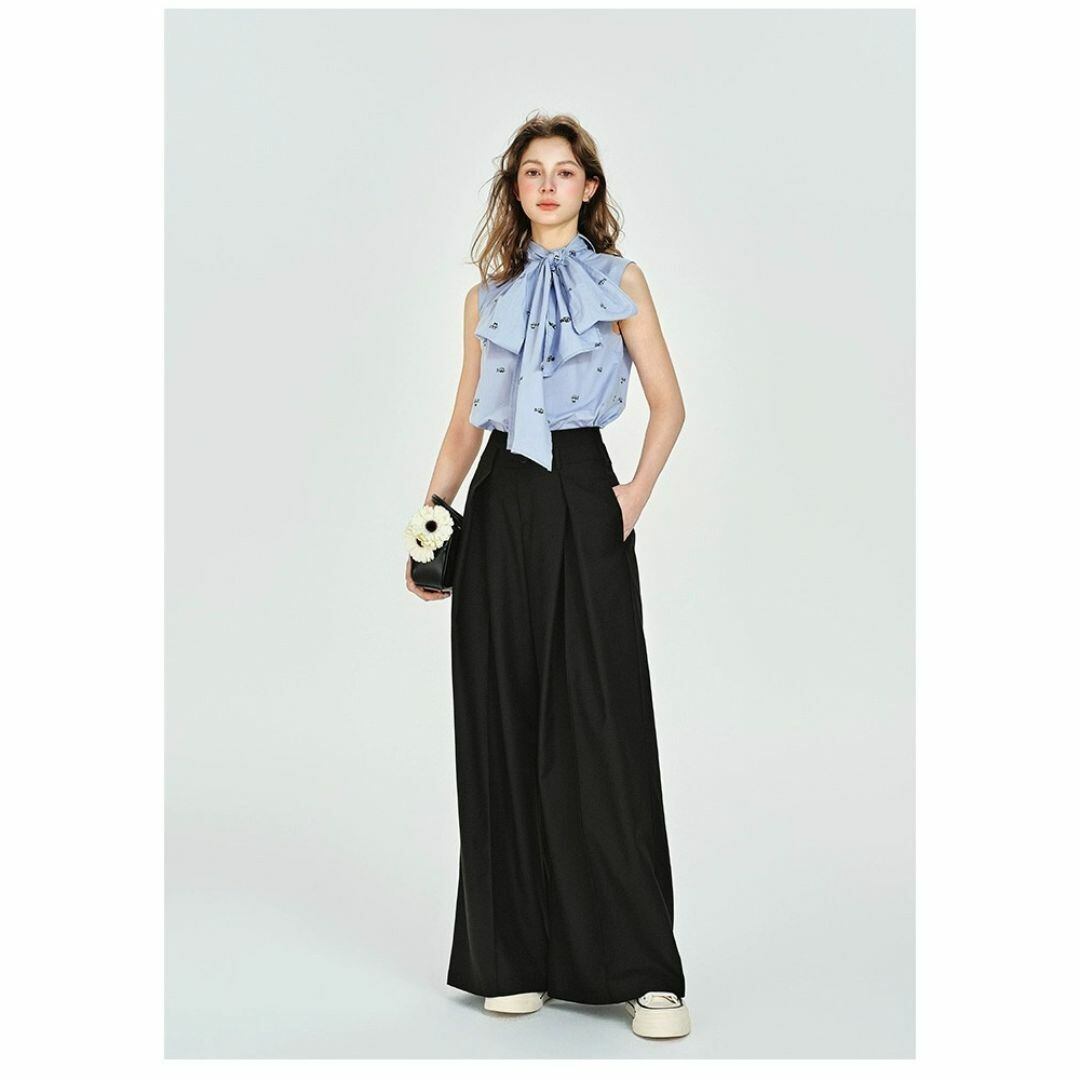 大きなリボンボウタイがガーリーで可愛いブラウス。爽やかなブルーとノースリーブが夏らしい一点です◎
