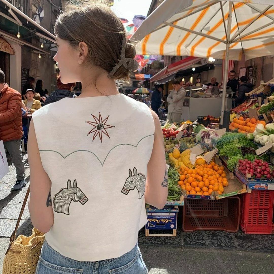 馬の刺繍が可愛いベスト。一枚でも、レイヤードしても。