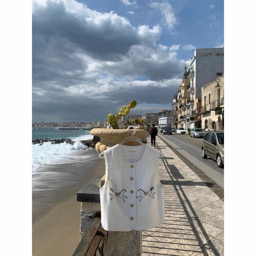 KERNEL COSMOS 刺繍 馬柄 ベスト ウエスタン ホワイト コットン