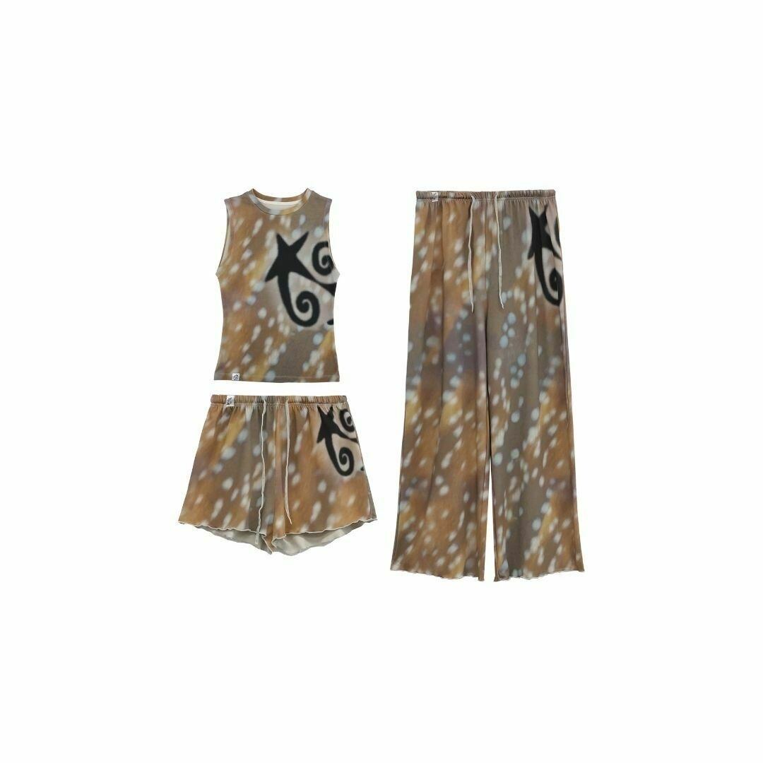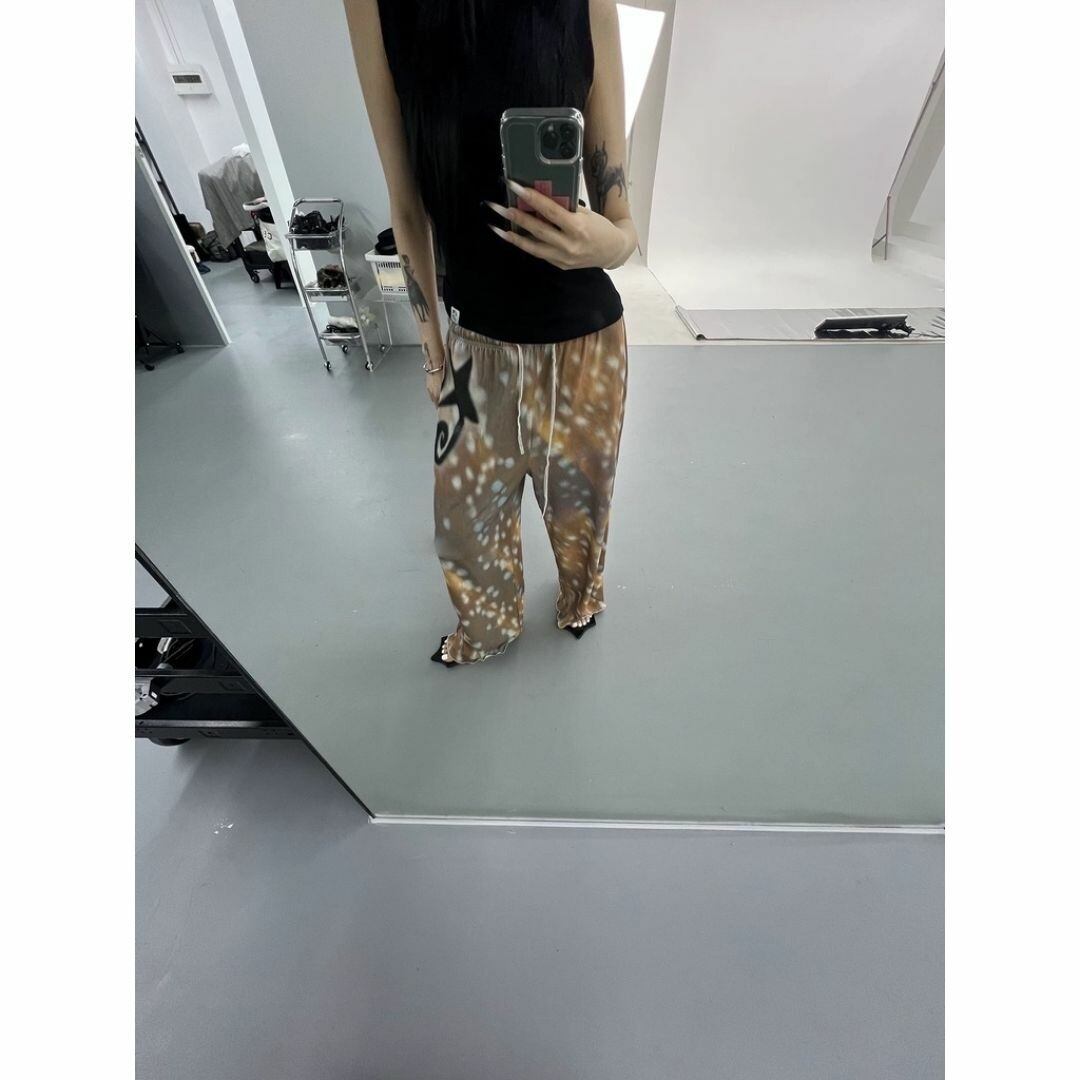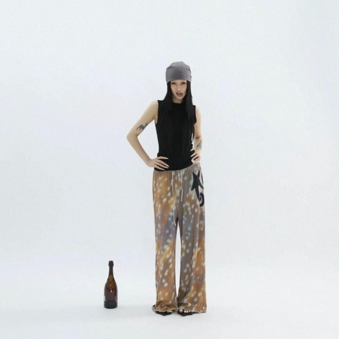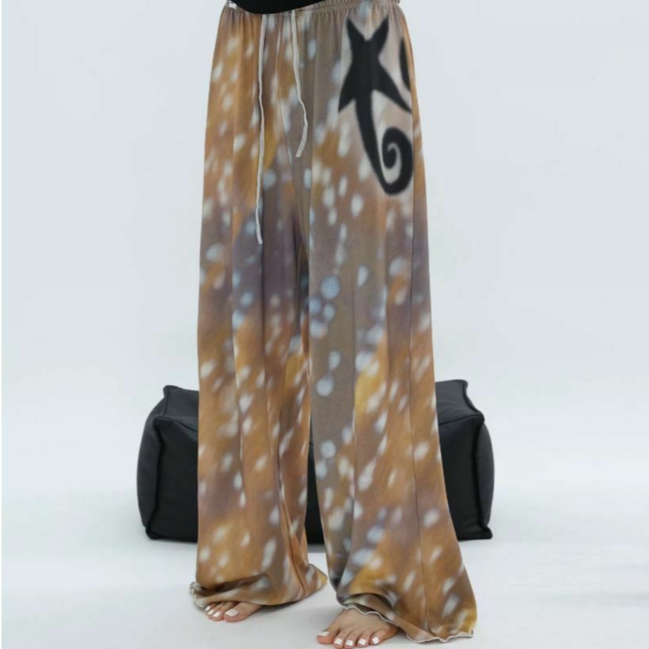 ブラウンのグラデーションカラーとヒトデ柄が印象的なパンツ。