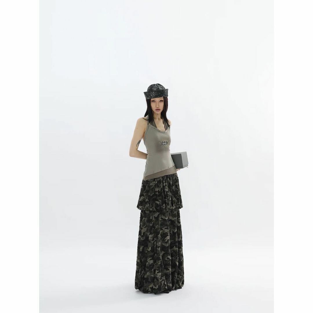 FUZZYKON 迷彩 レイヤード バルーンスカート ロング グリーン