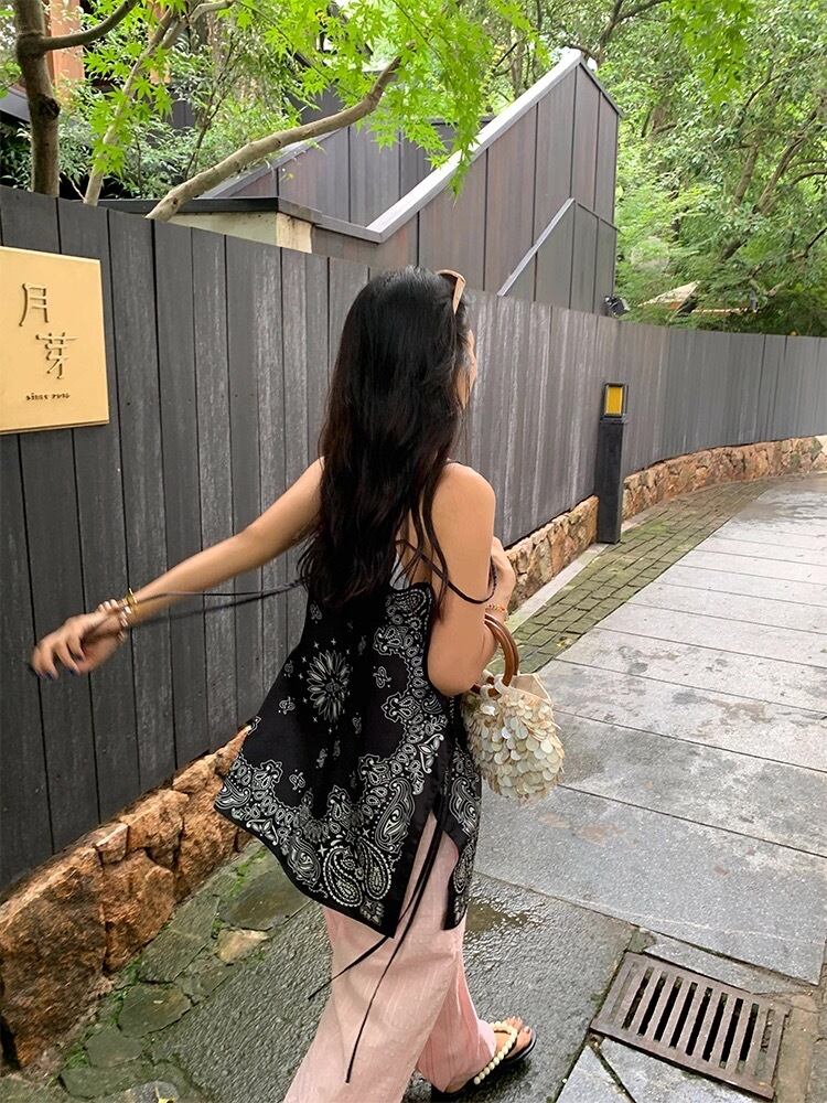 LUOLUOJUANJIE バンダナ キャミソールトップス ワンピース リボン