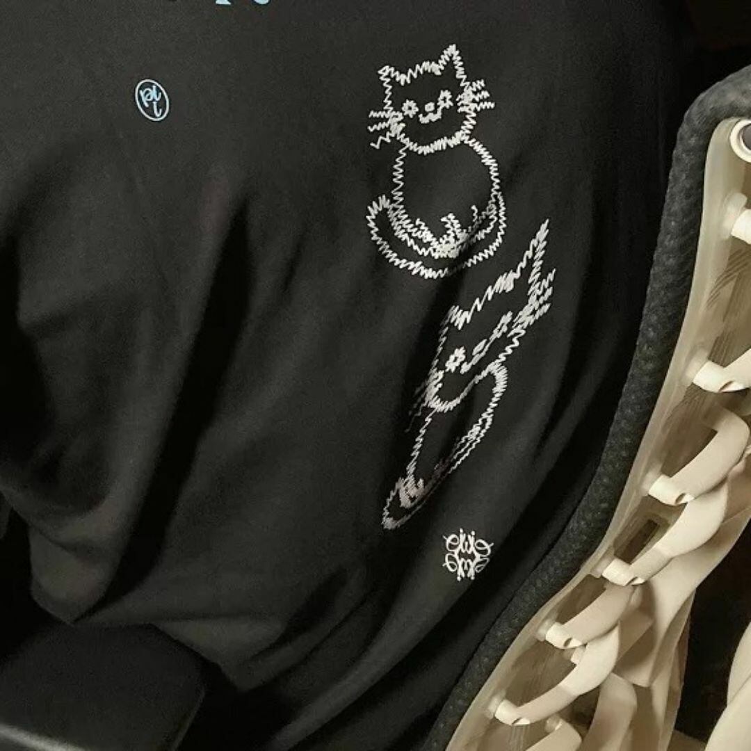 猫の柄とロゴが可愛いTシャツ。ユニセックスで着用可能です◎