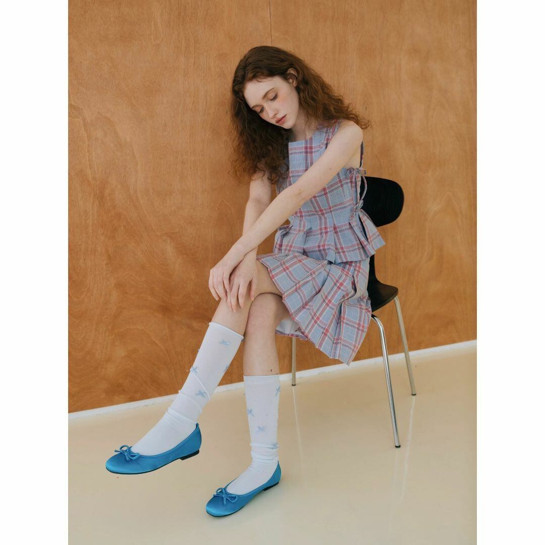 whiteiswhite チェック柄 リボン ノースリーブトップス コットン