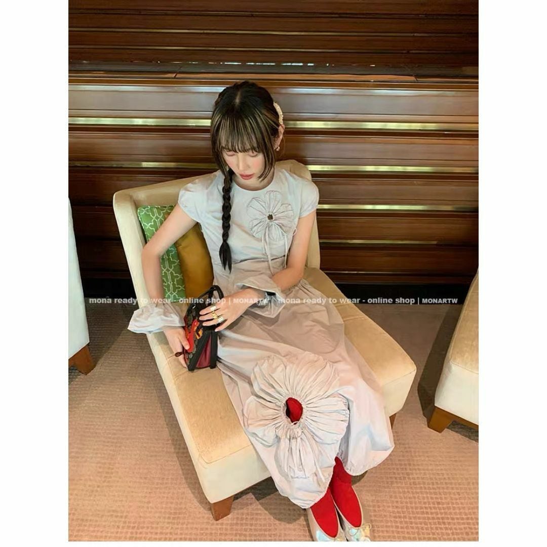 MONA フラワーカットアウト パフ ロングワンピース お花 バルーン