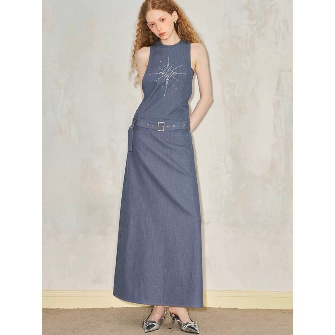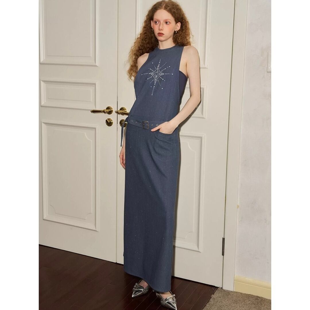 DIDDI MODA デニム シルバーグリッター ワンピース ノースリーブ