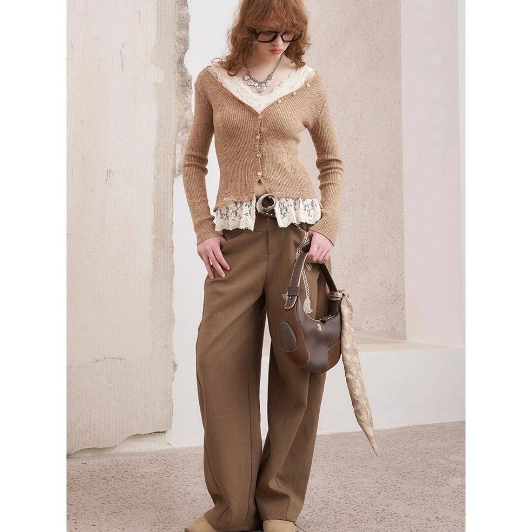 DIDDI MODA ダメージ レースレイヤード ニット Vネック リブ