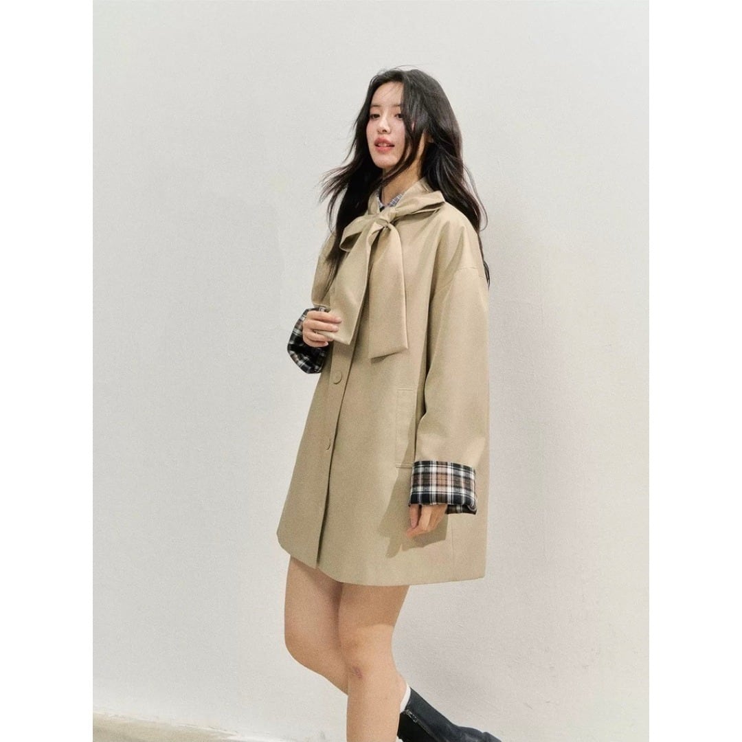 SunsetPark リボン ボウタイ トレンチ コート Aライン フレア