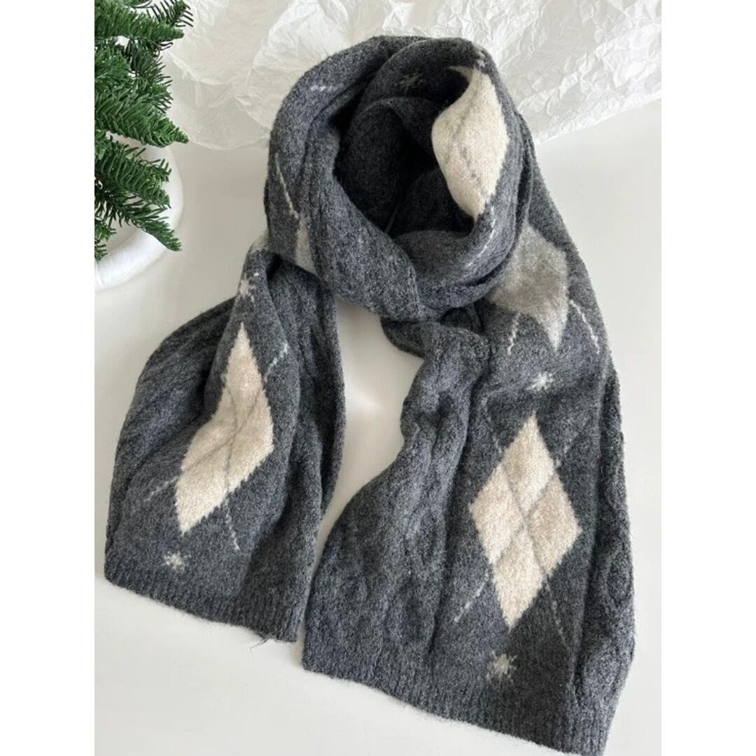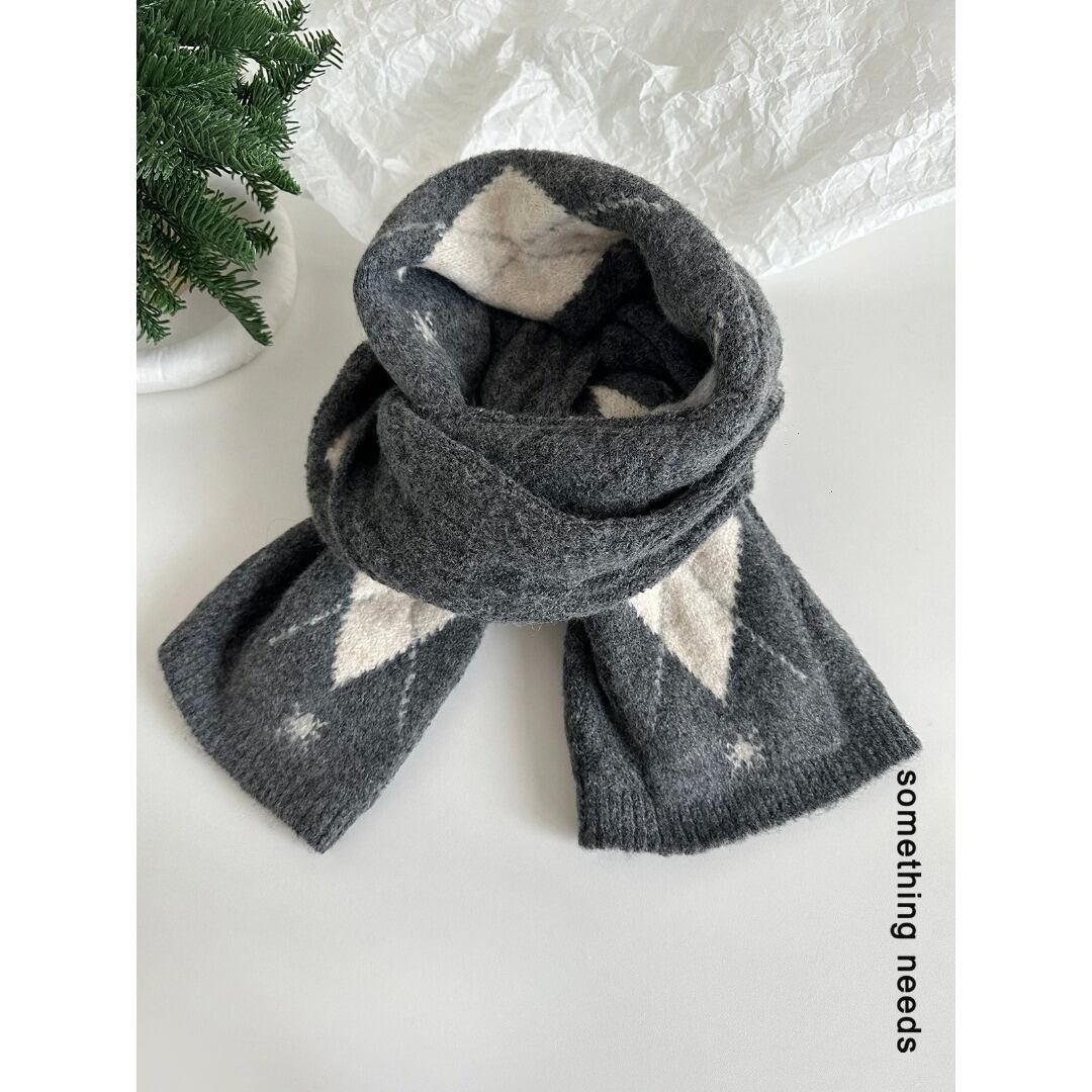 something needs アーガイル柄 ニット マフラー グレー ストール