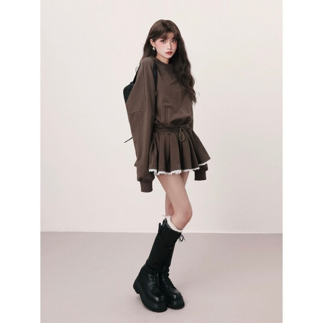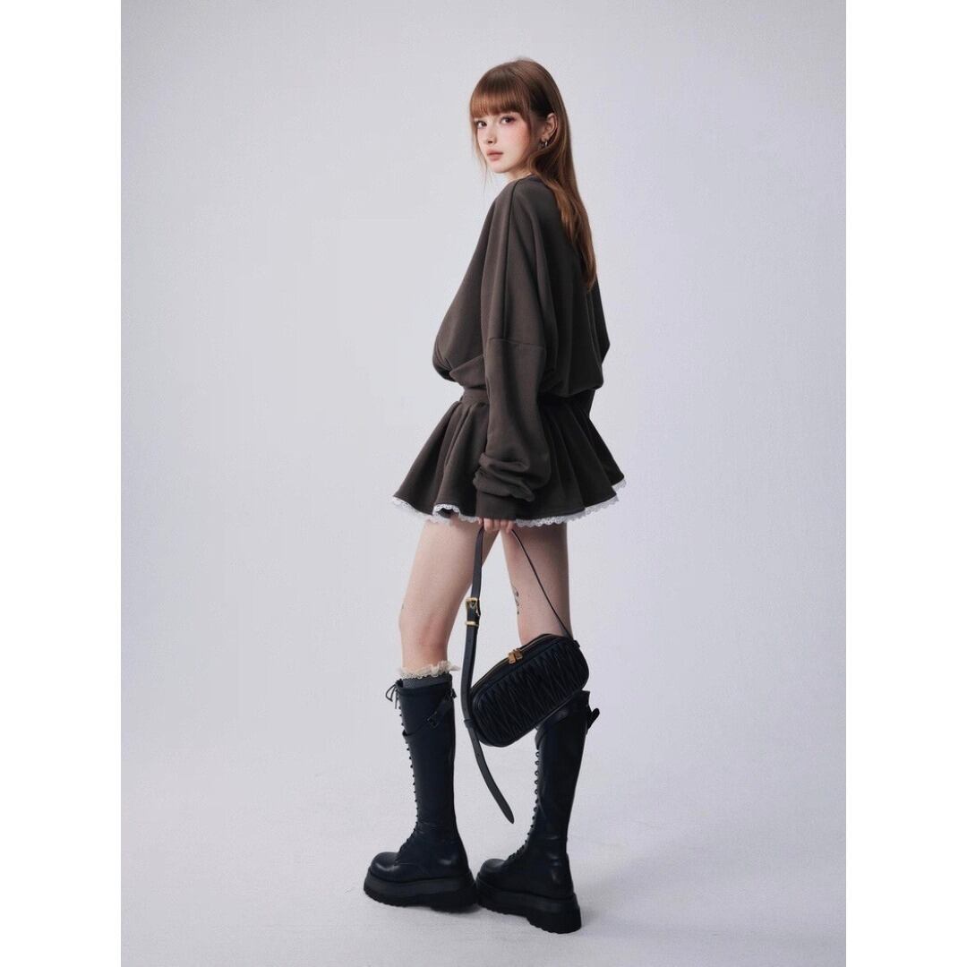 MuuRos スウェット ミニ ワンピース フレア ブラウン オーバーサイズ
