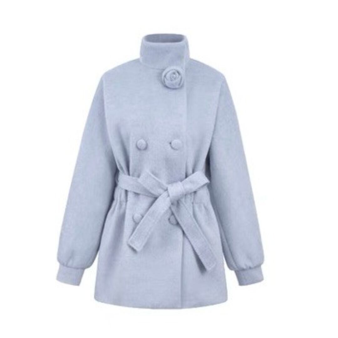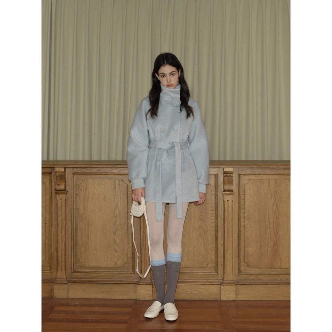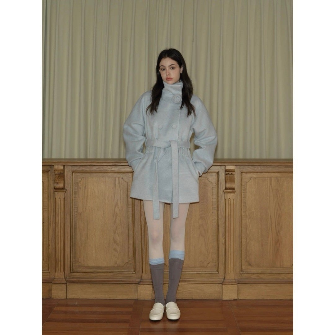 RECIT アイスブルー スタンドカラー ミディアム コート