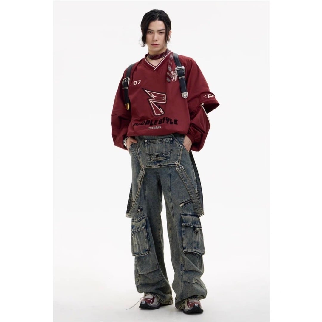 ■Design:ユニセックス 取り外し可能な袖 プルオーバー 刺繍