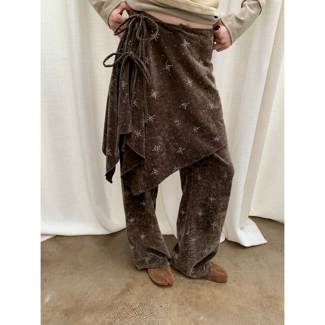 ■Design:ベルベット スカートパンツ セット ラインストーン