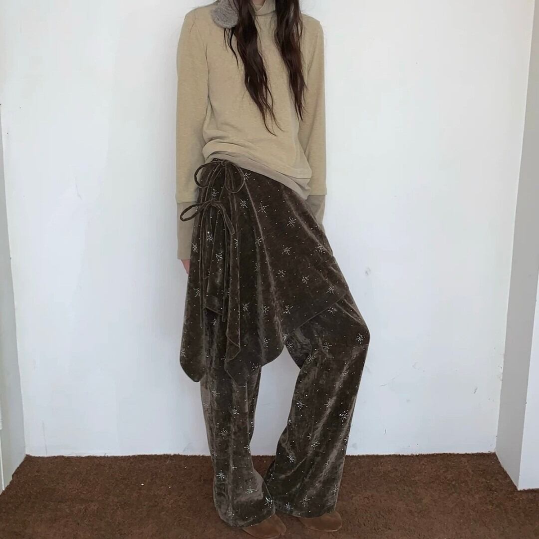 dorydory ベルベット ラインストーン ツーピース パンツ スカート