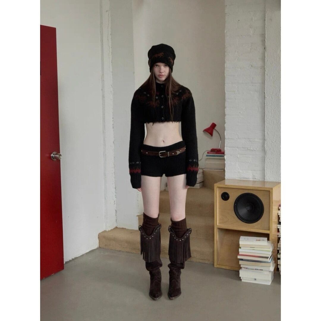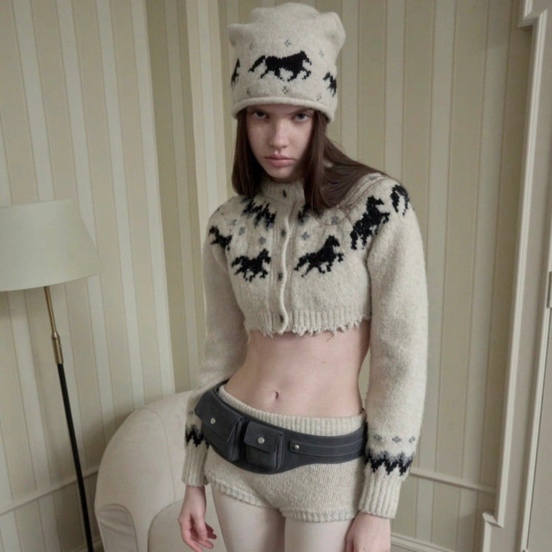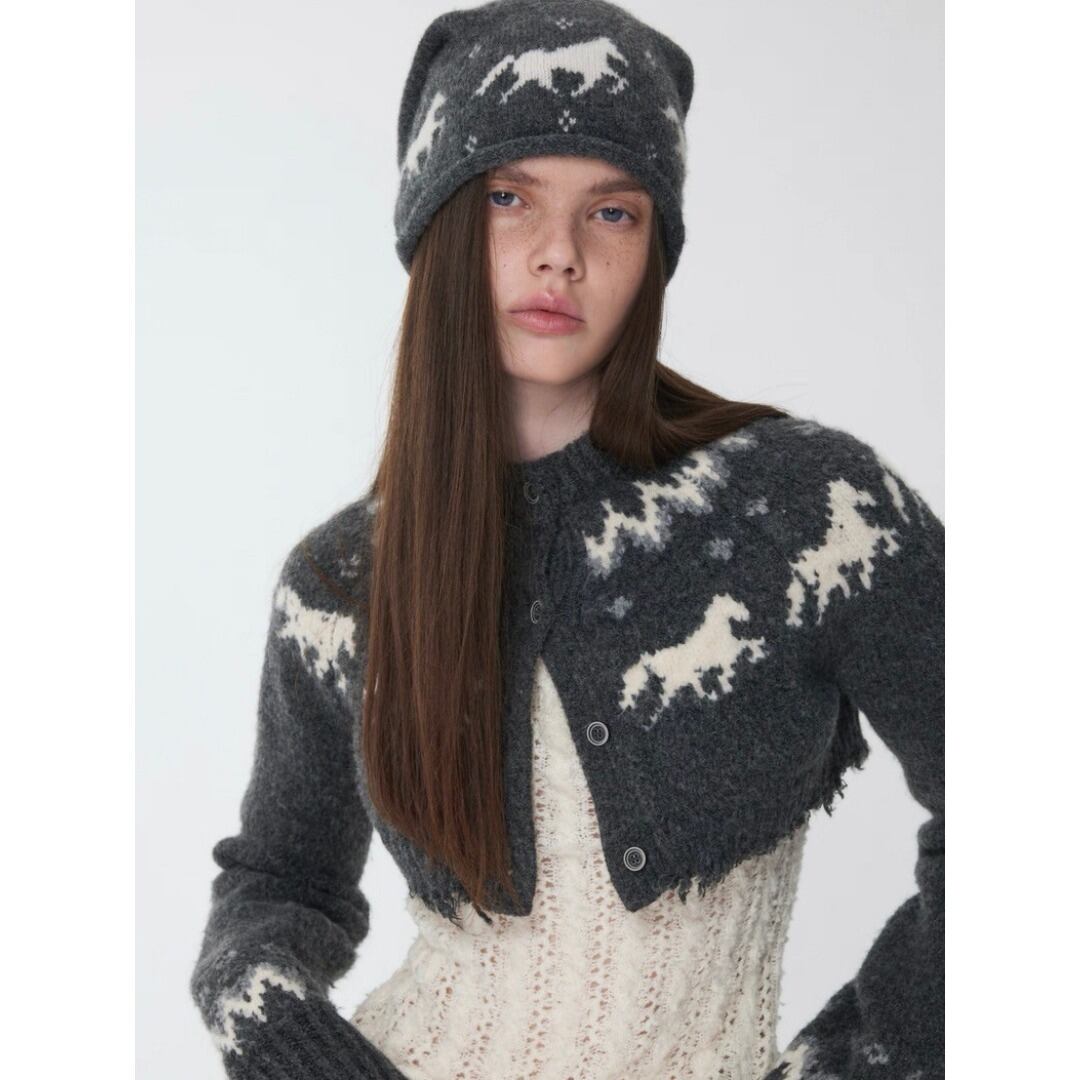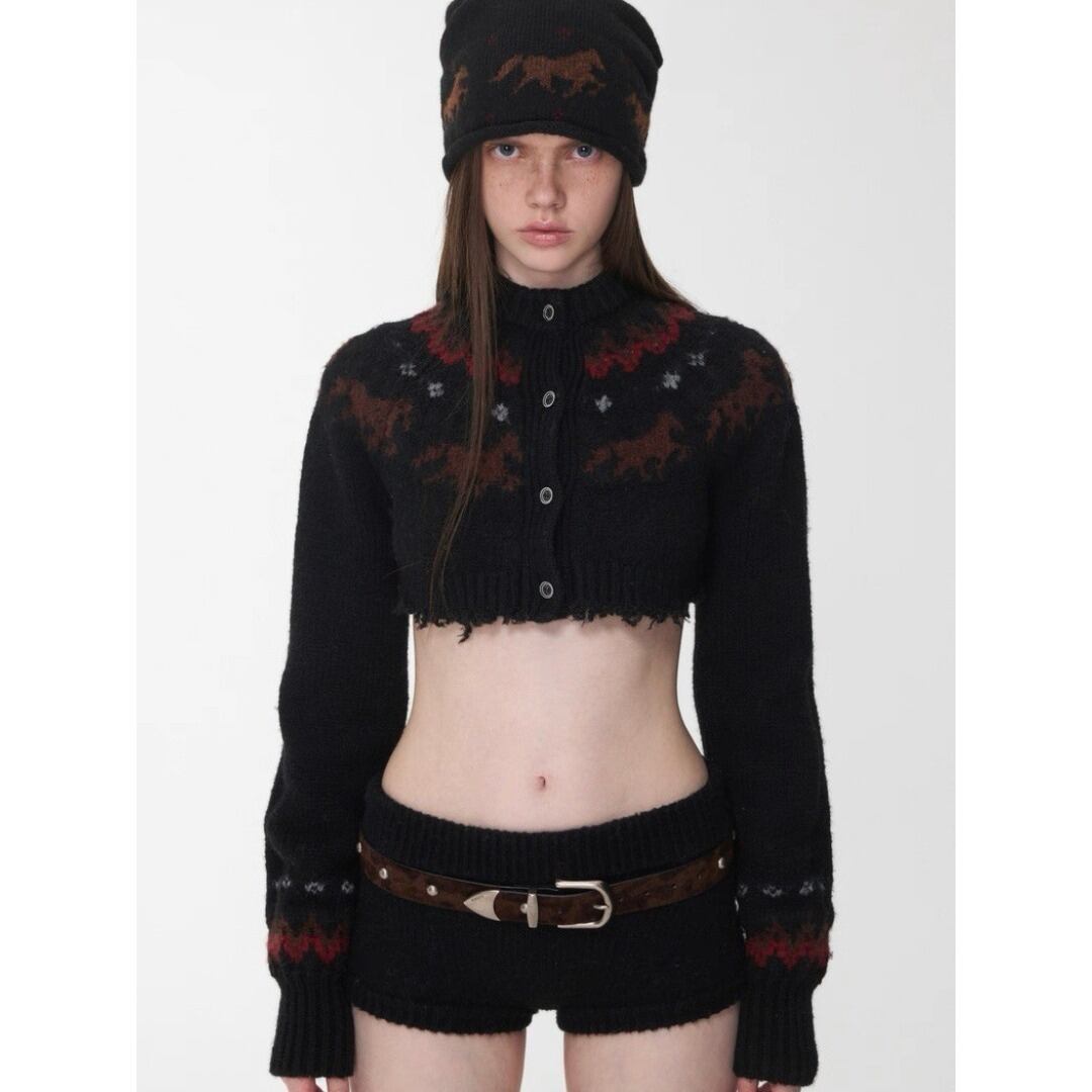 1JINNSTUDIO 馬柄 スーパーショート フェアアイル ニットカーディガン