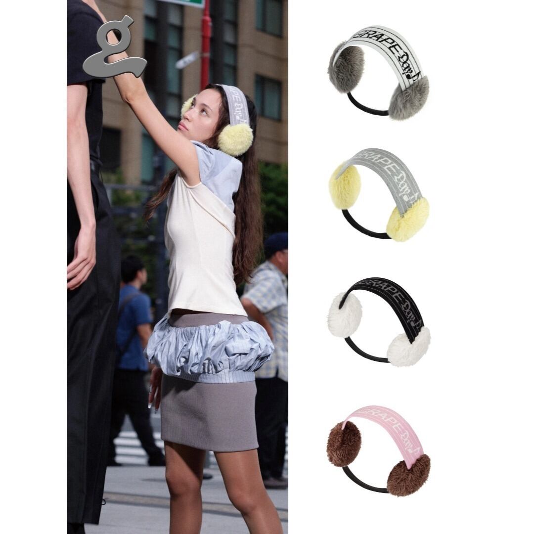 GRAPE ファー付き ロゴ イヤーマフ ニット Y2K