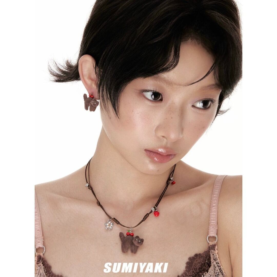 SUMIYAKI チェリー キャット ペアピアス モカ 猫 Y2K