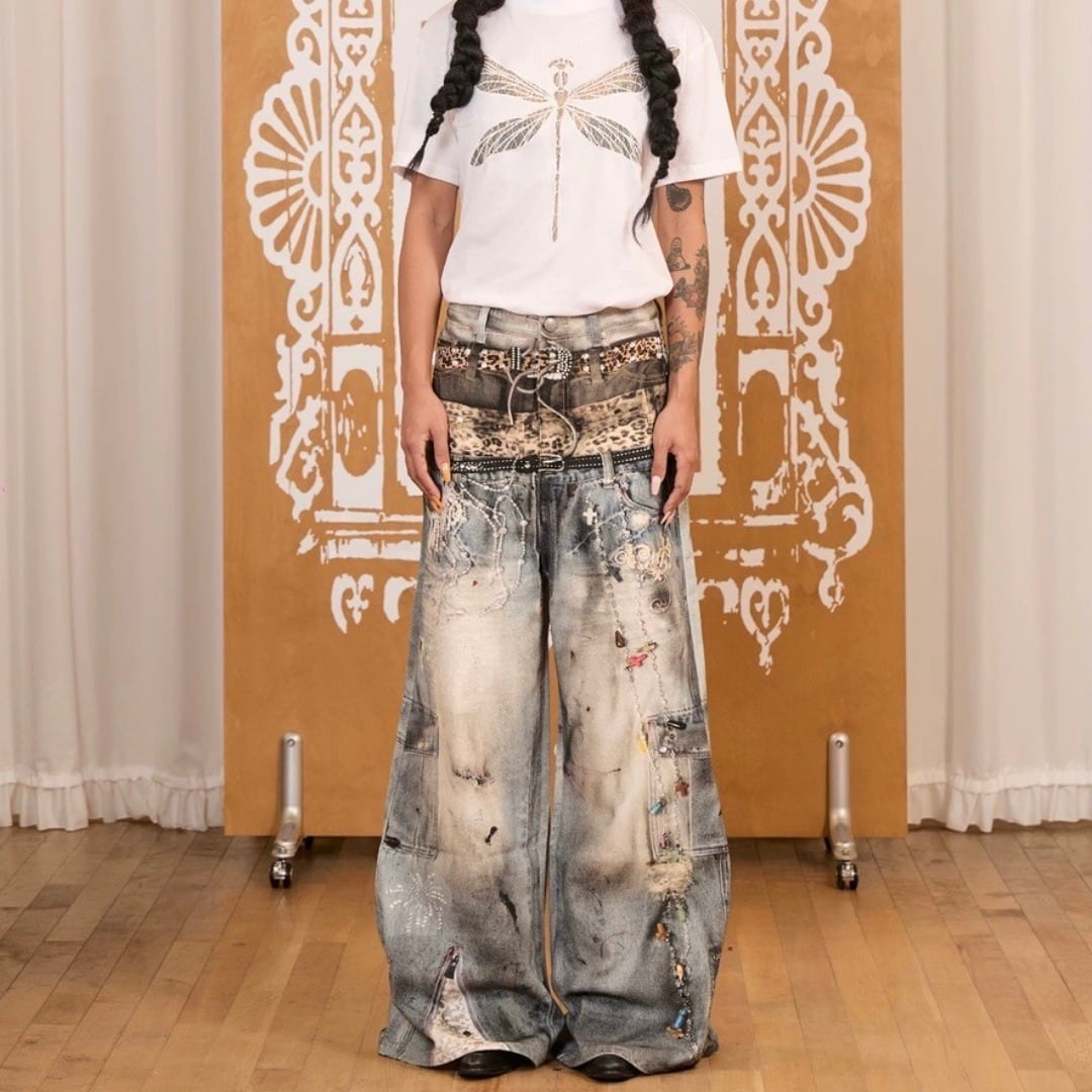 APRIORITY ユニセックス 3Dプリント ワイド デニム カーブ グランジ