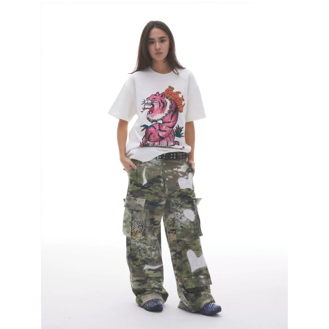 eeee.artmonster ユニセックス 迷彩 ダメージ ワイド パンツ