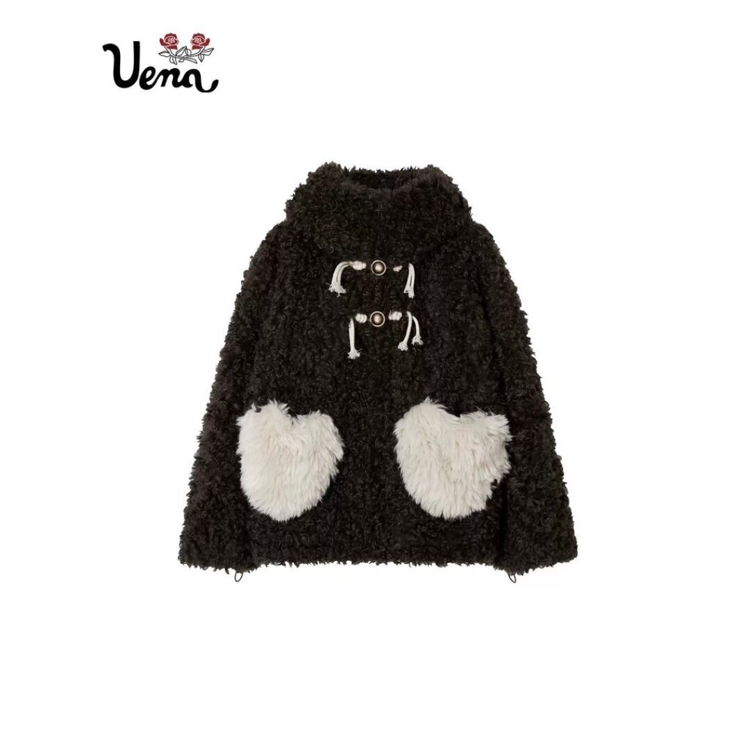 Uena エコファー うさぎ 耳付きフード ショート コート ハート ダッフル