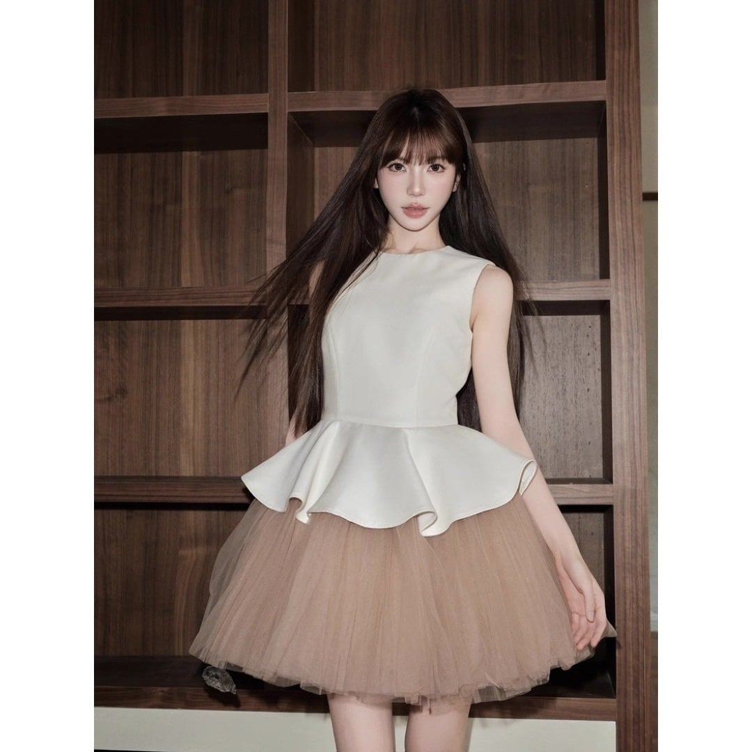 avenement フレア ノースリーブ ベロアワンピース チュール ドレス