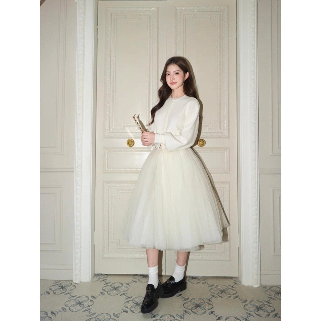 大きく広がるフレアシルエットがガーリーで可愛いミディアムスカート。