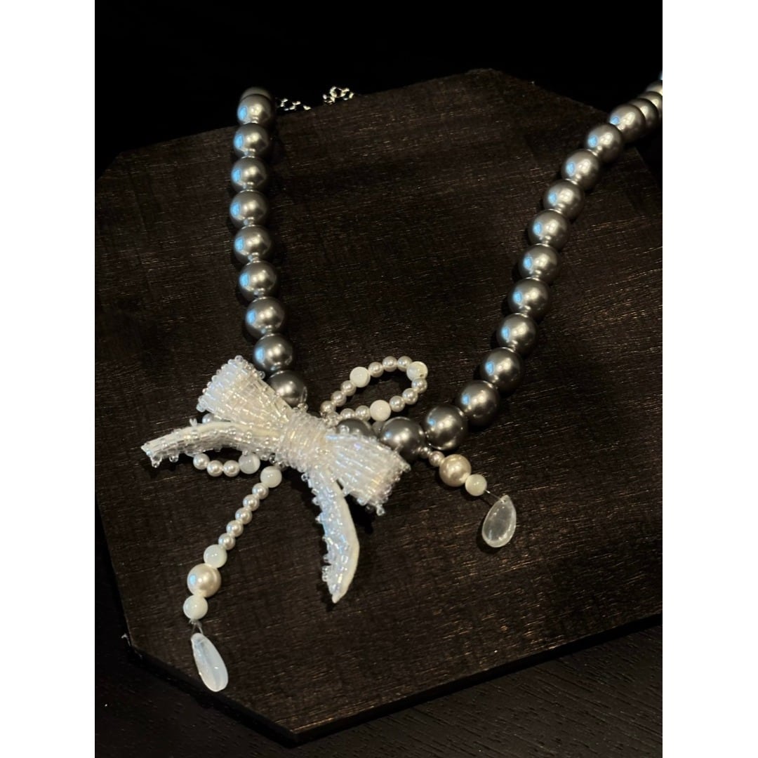 ■Design:リボン ビーズ パール チョーカー ネックレス Y2K