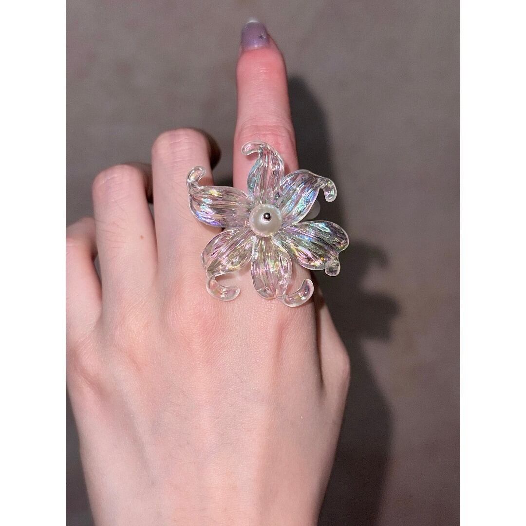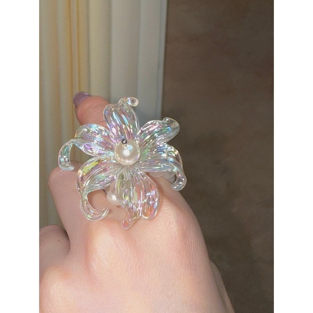 ■Design:フローラルアイリス パール ダブルレイヤー リング 指輪 Y2K