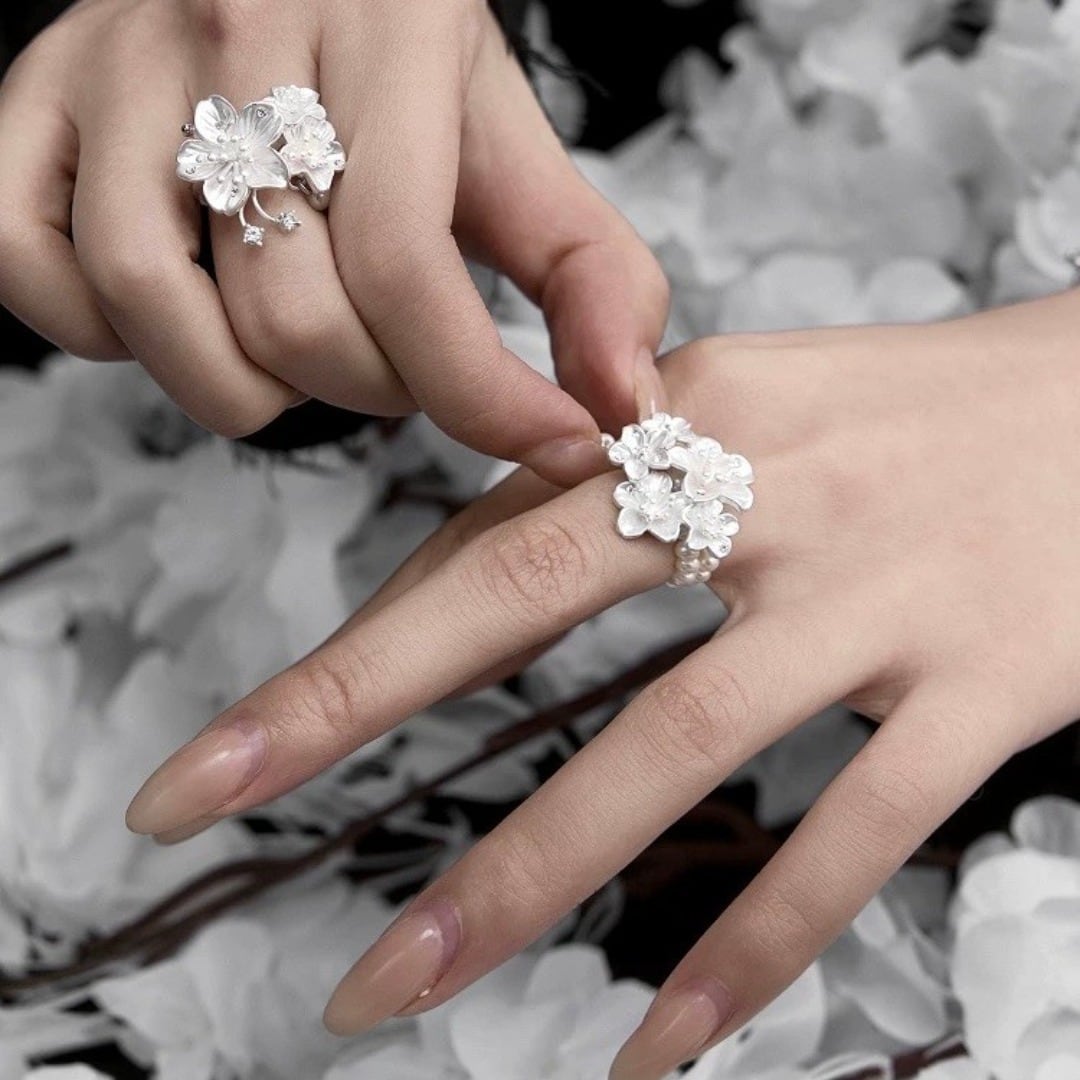 SUMIYAKI オリジナル 夜桜 ホワイト パール リング 指輪 Y2K