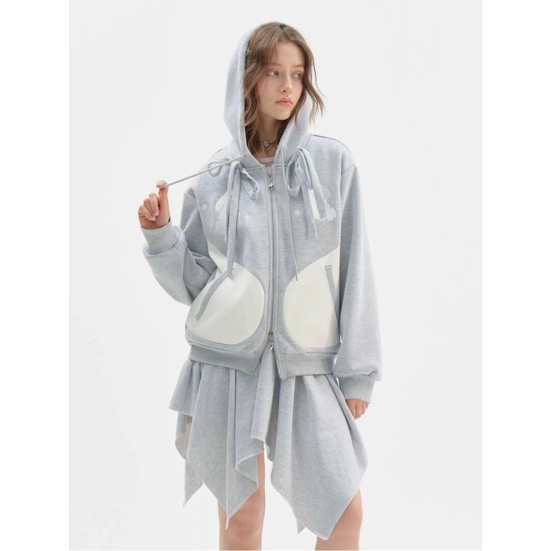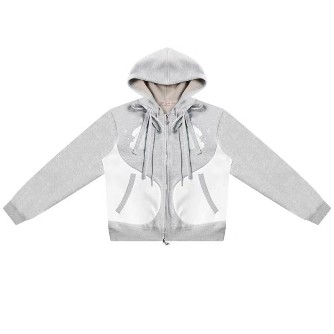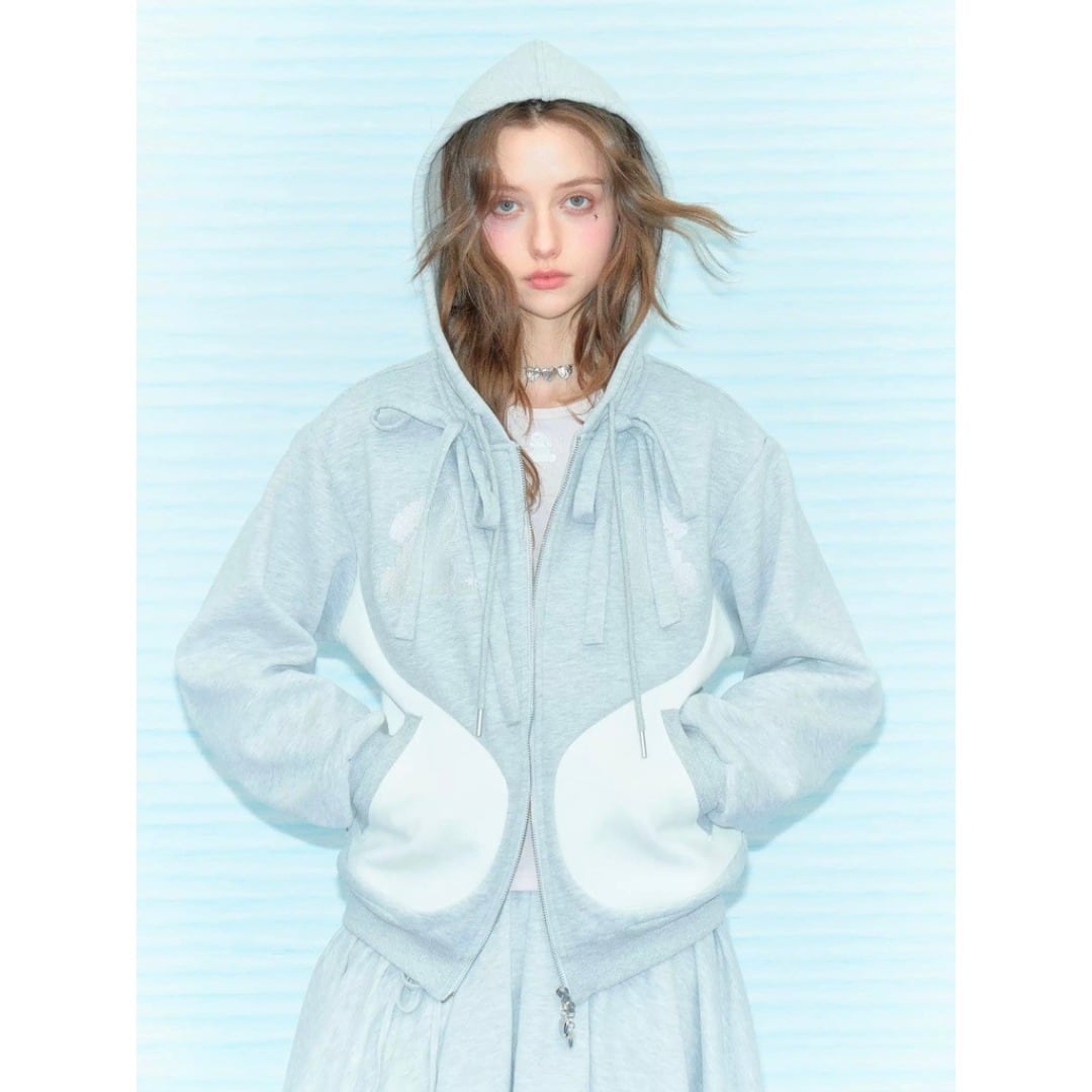 ziziFei ラビット ツートーン リボン パーカー オーバーサイズ グレー