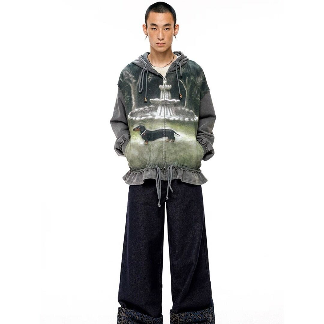 ■Design:ユニセックス ダックスフンド プリント パーカー オーバーサイズ