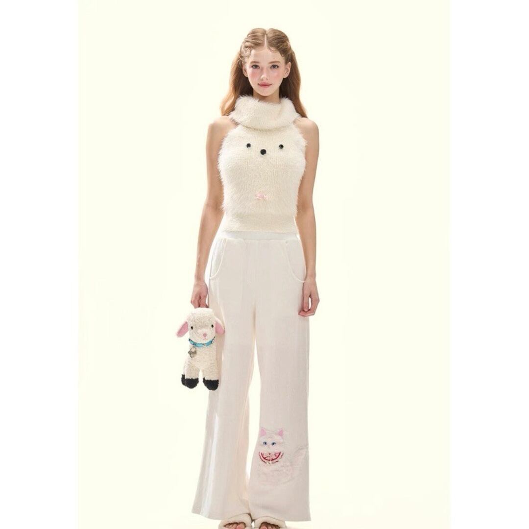 GirlyFancyClub 3D子犬 シャギー ニット トップス ノースリーブ