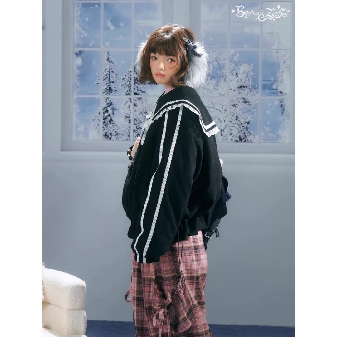 ziziFei レースライン ジャージ セーラーカラー コート 中綿 ジャケット
