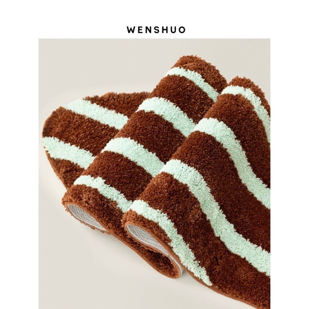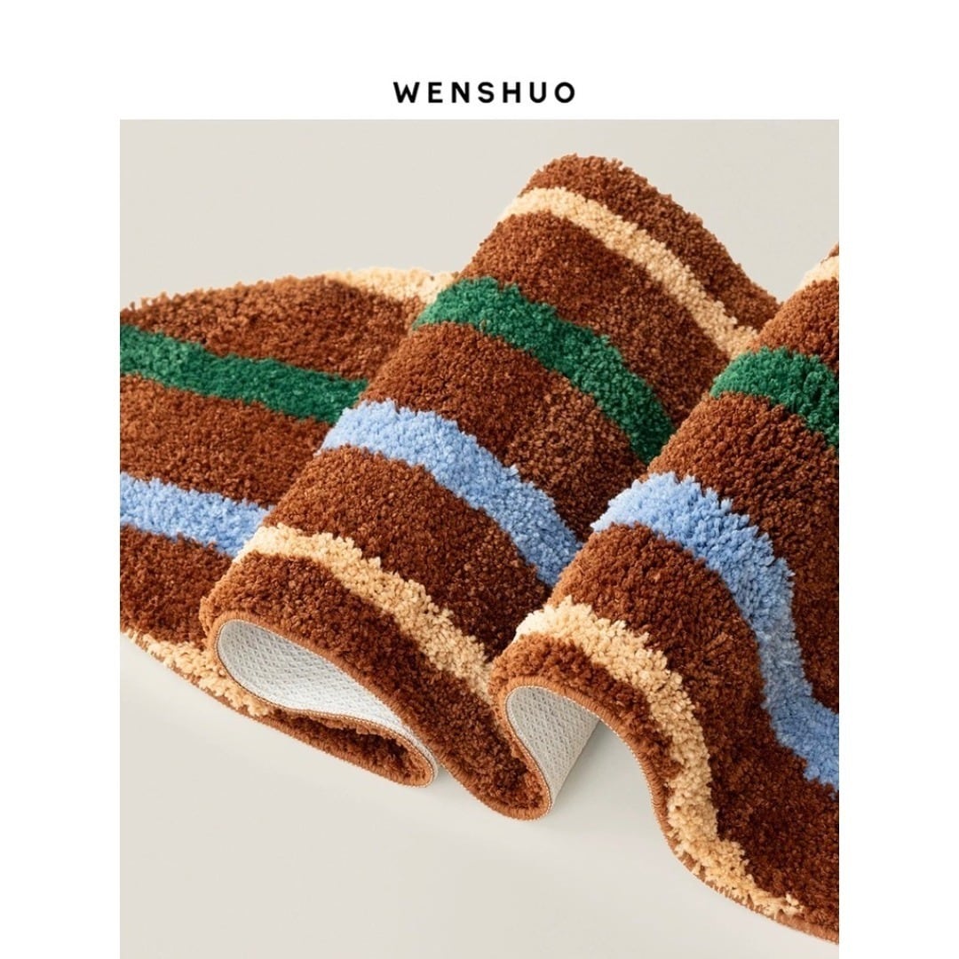 WENSHUO アート ストライプ サークル ミニラグ マット ブラウン