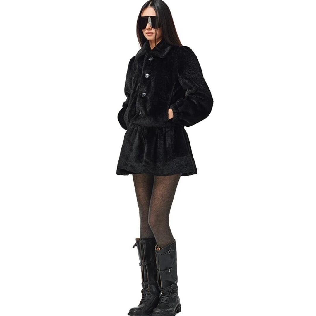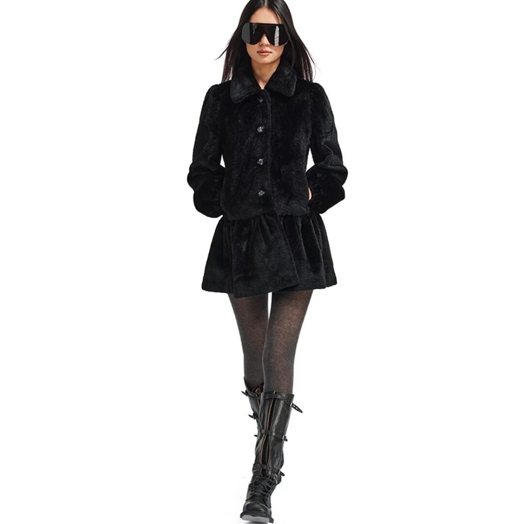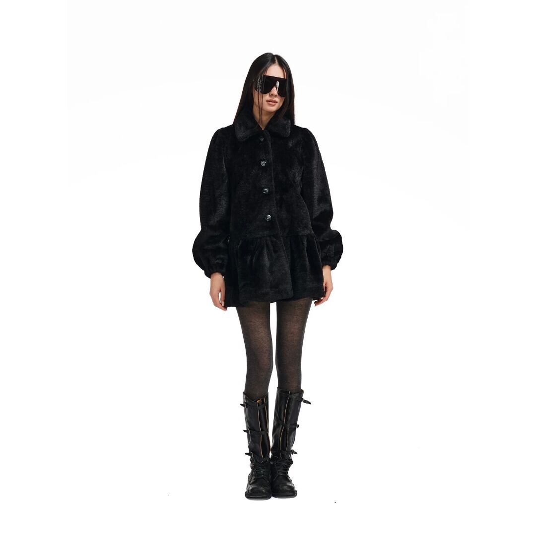 ■Design:テディベア エコファー パフスリーブ ワンピース フレア コート