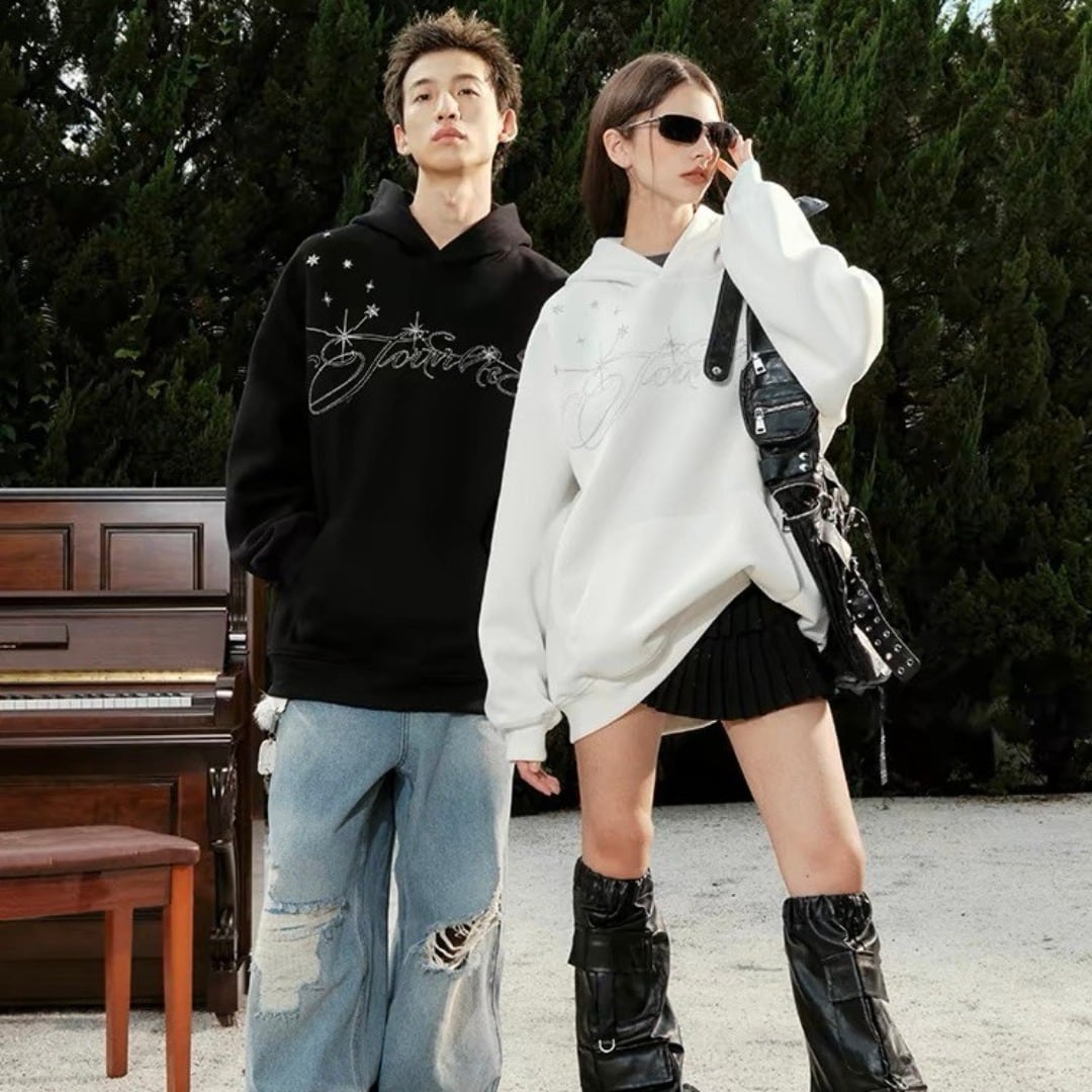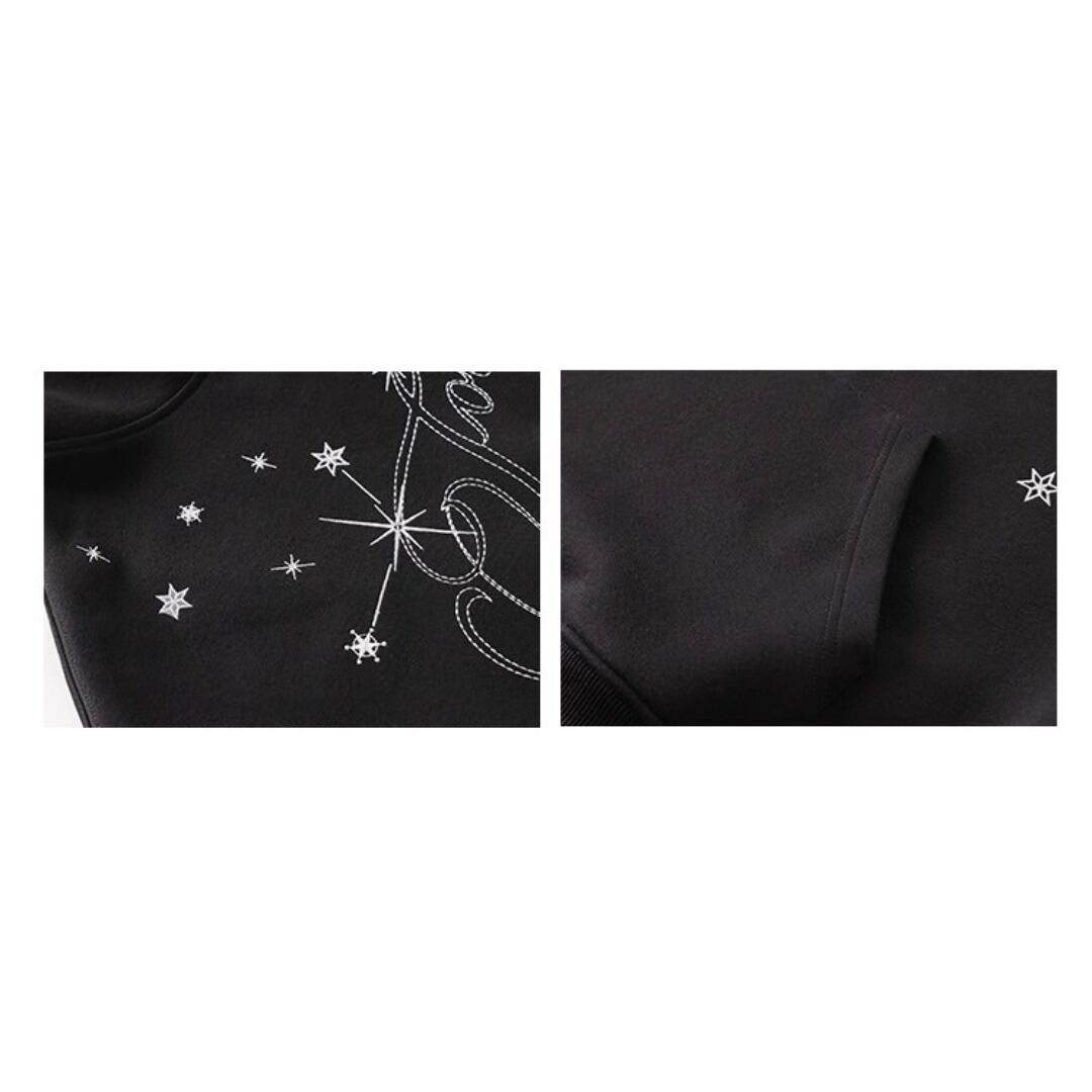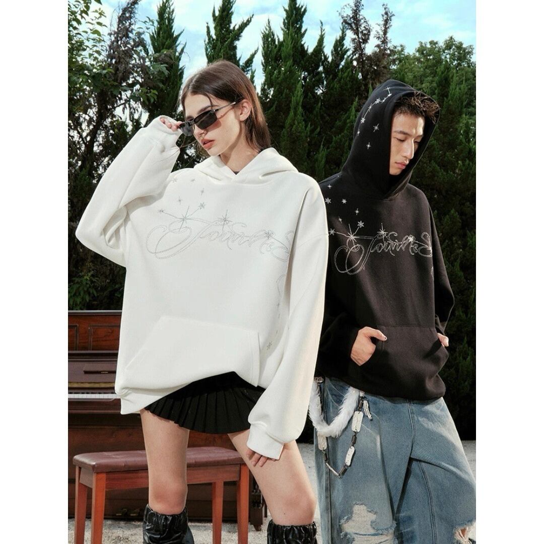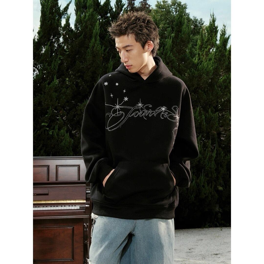 ■Design:ユニセックス スター刺繍 オーバー ヘビーウェイト フーディ パーカー Y2K
