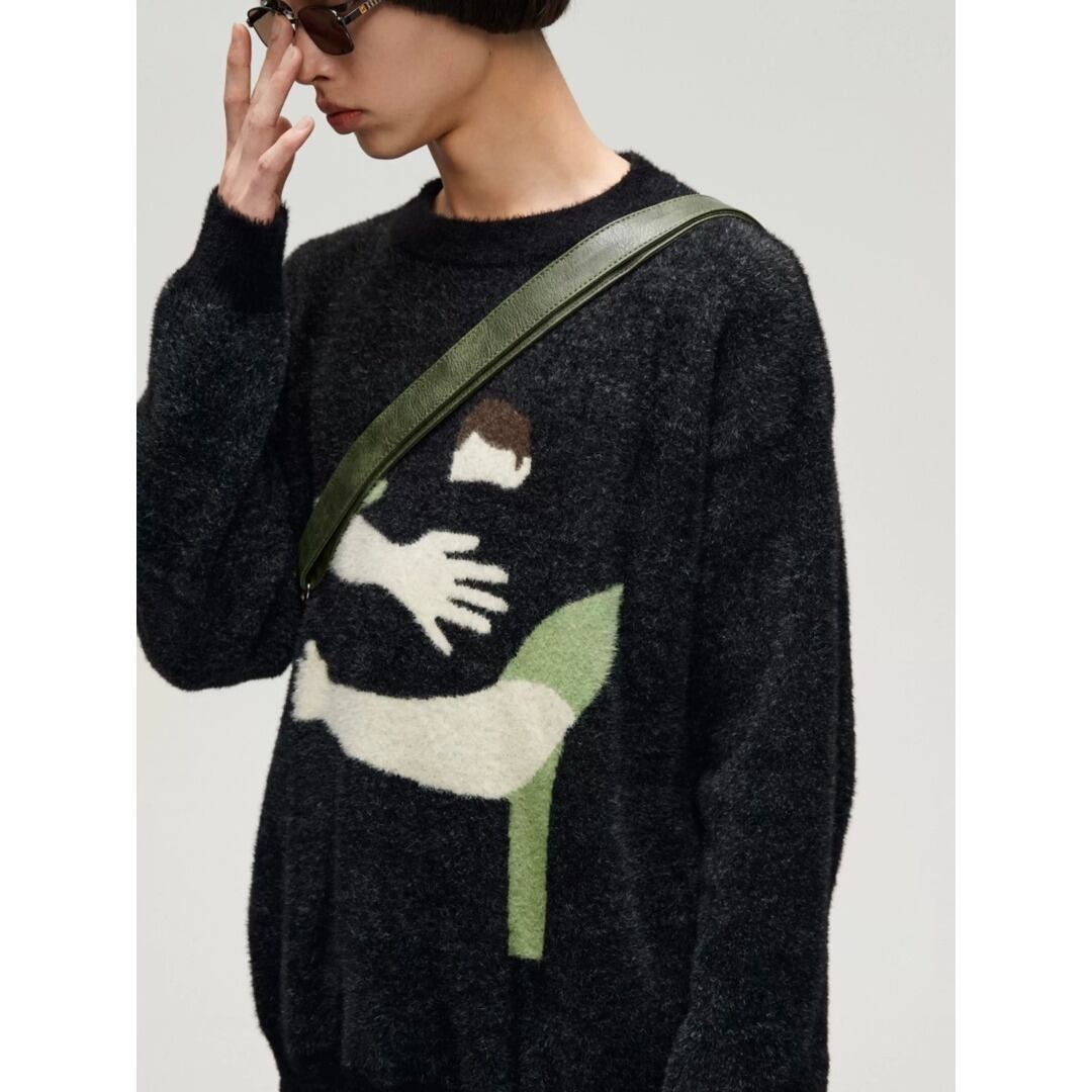 ■Design:ユニセックス アート ハグ シャギー クルーネック ニット