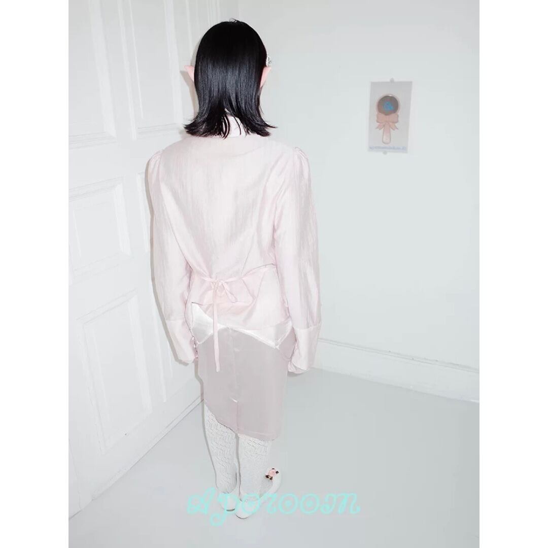 aporoom official シアー パフスリーブ ロングカフス ブラウス