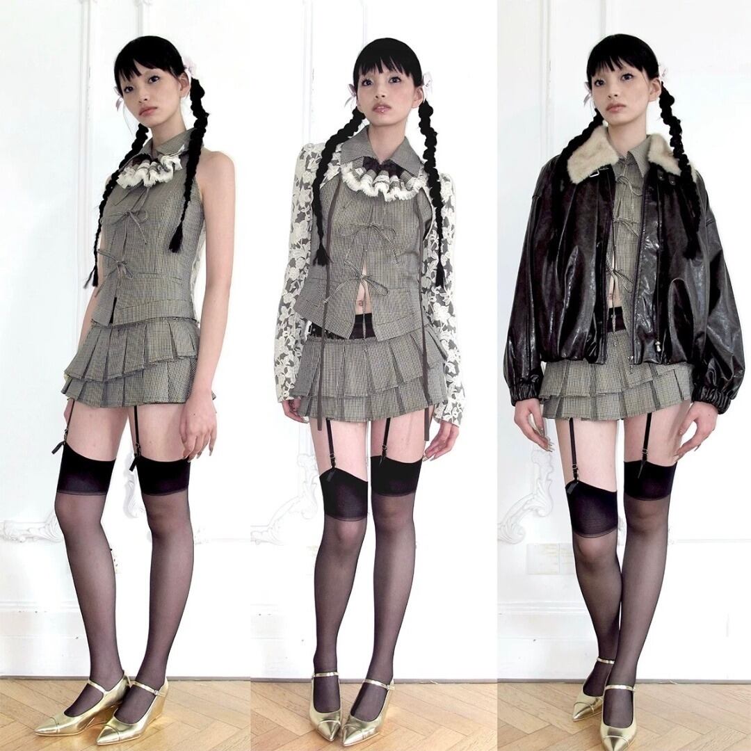 ■Design:ヴィンテージチェック シャツ リボン レース ノースリーブ ベスト