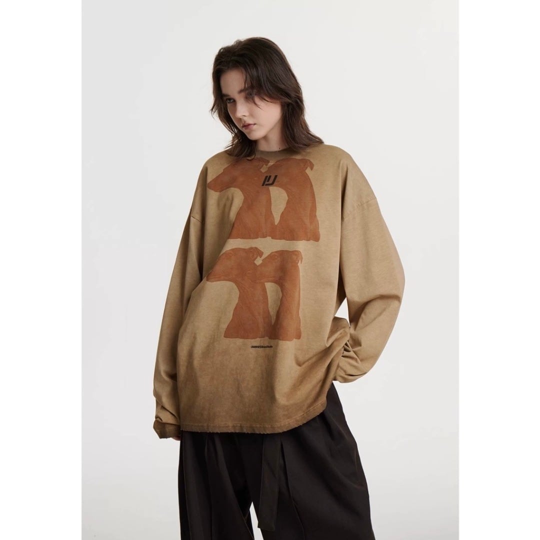 ■Design:ユニセックス オリジナルドックプリント オーバー カットソー グランジ ダメージ加工