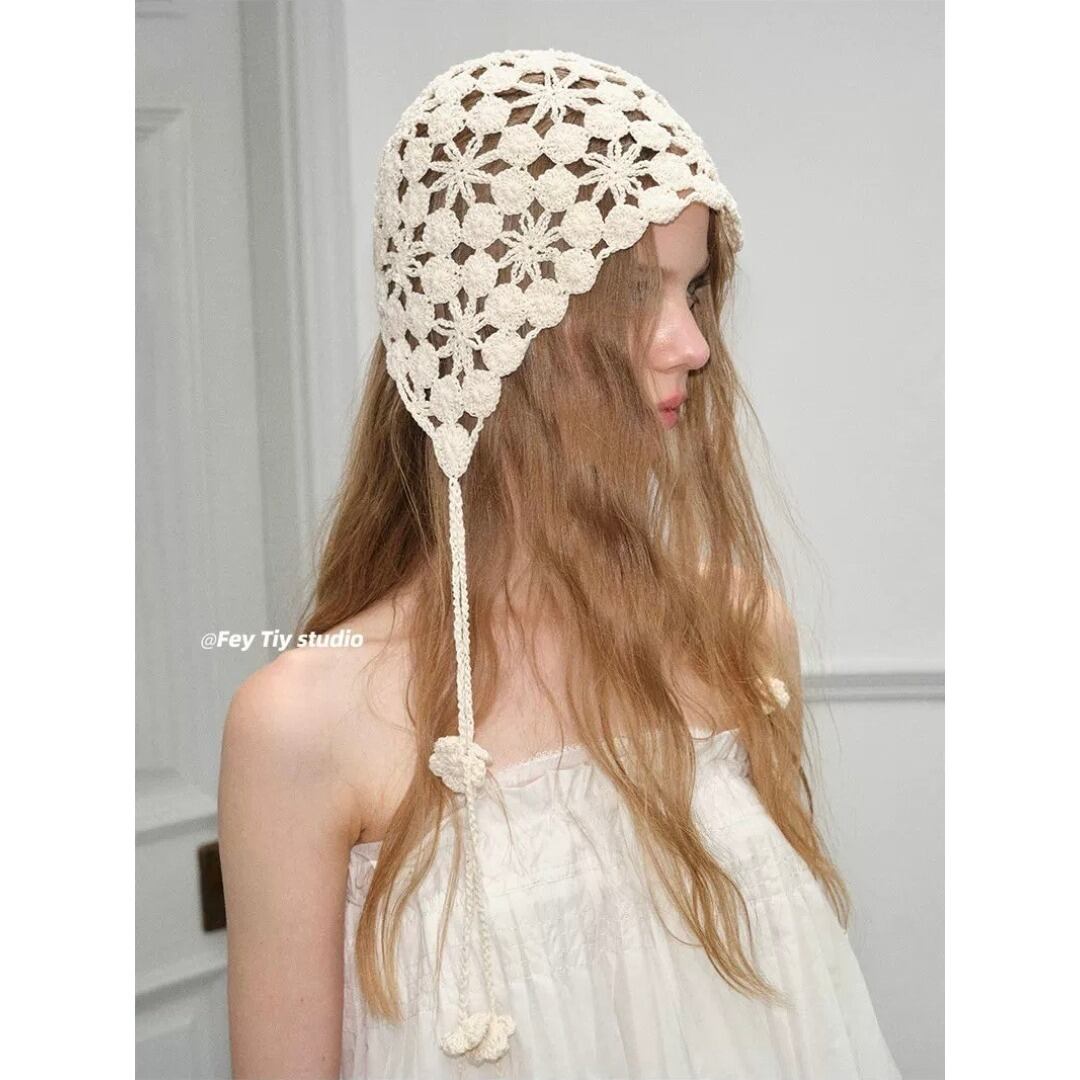 feytiy 花柄 クロシェ レース かぎ編み ニット帽子 アイボリー