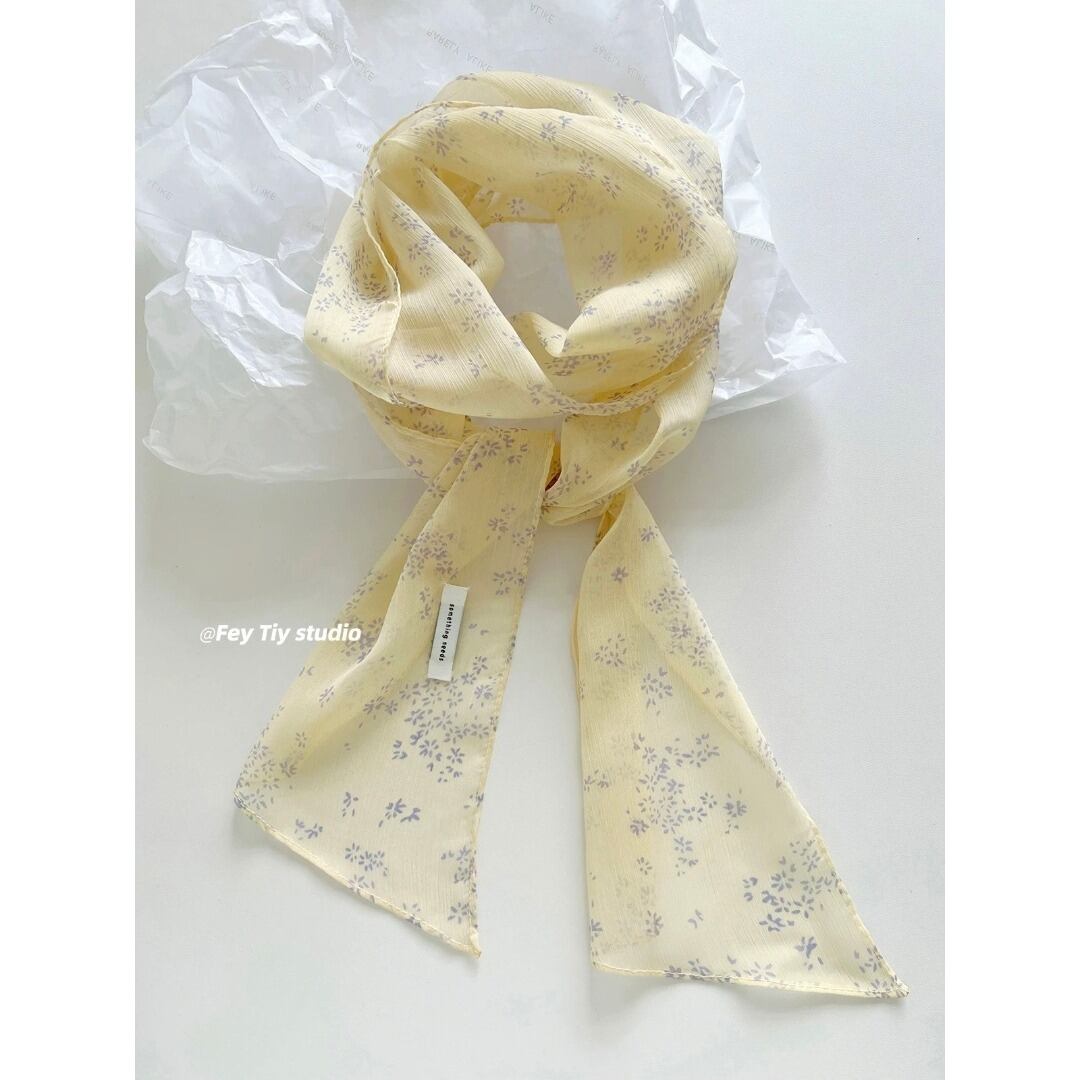 feytiy 小花柄 ライトイエロー ロング スカーフ シアー リボン
