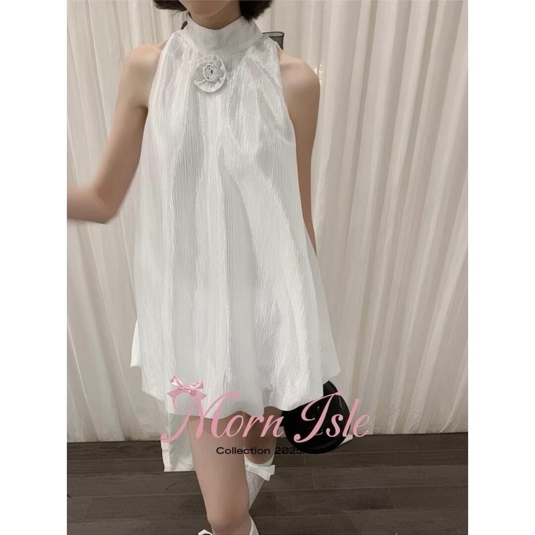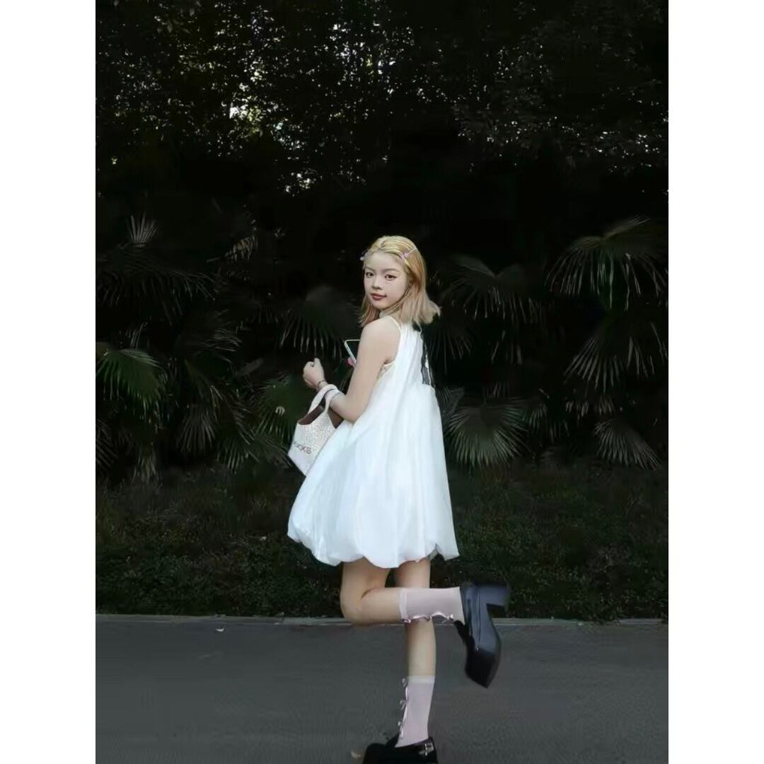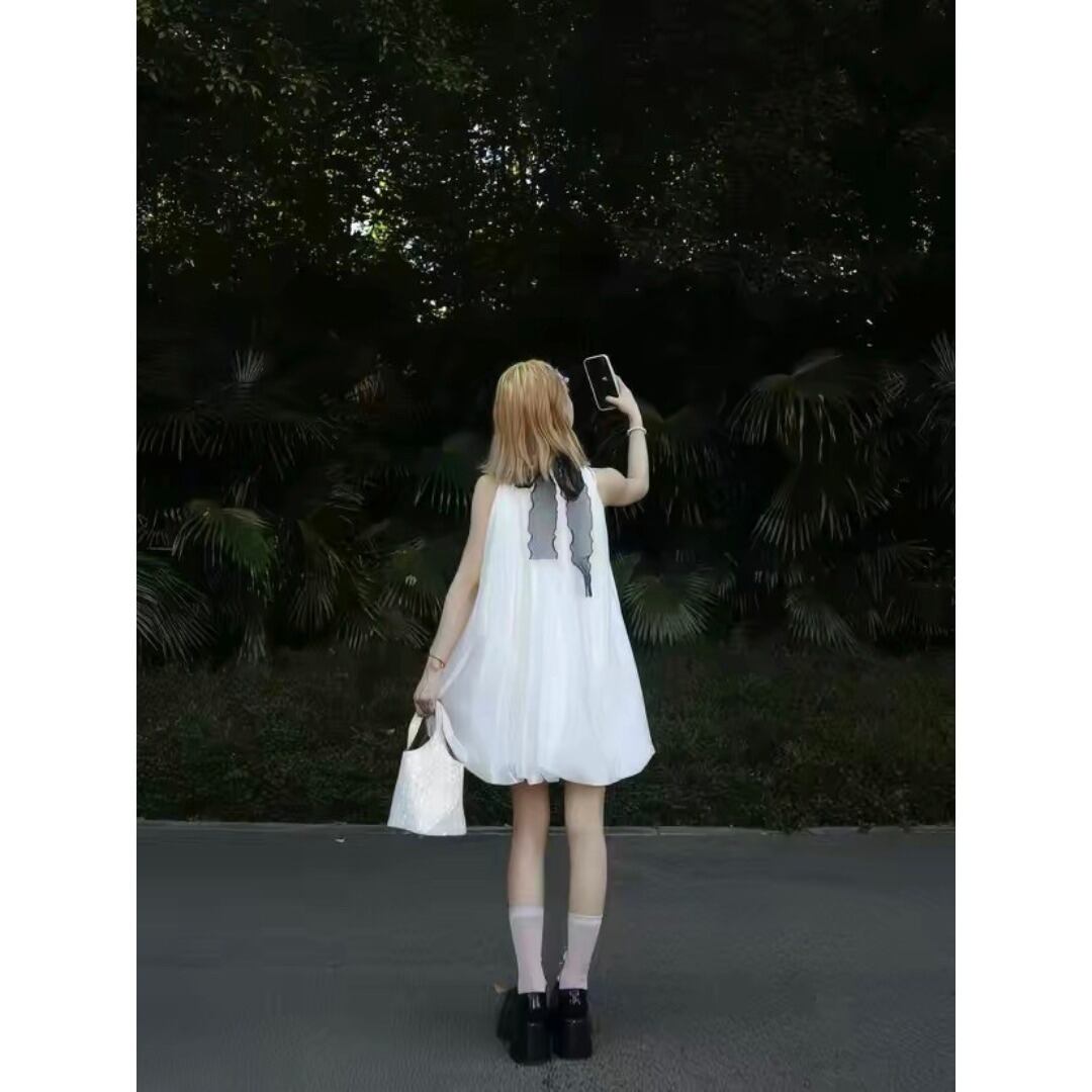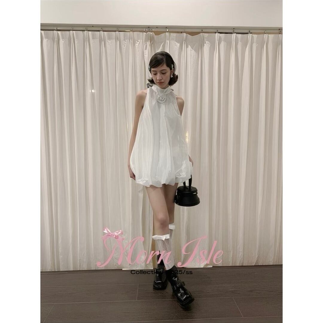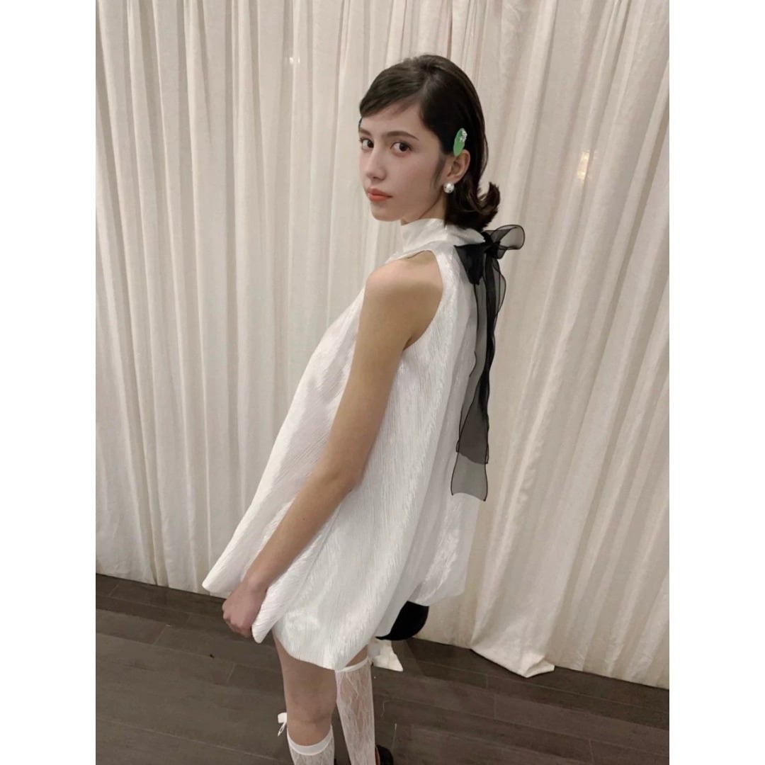 ■Design:バルーン ノースリーブ ミニ ワンピース リボン 結婚式