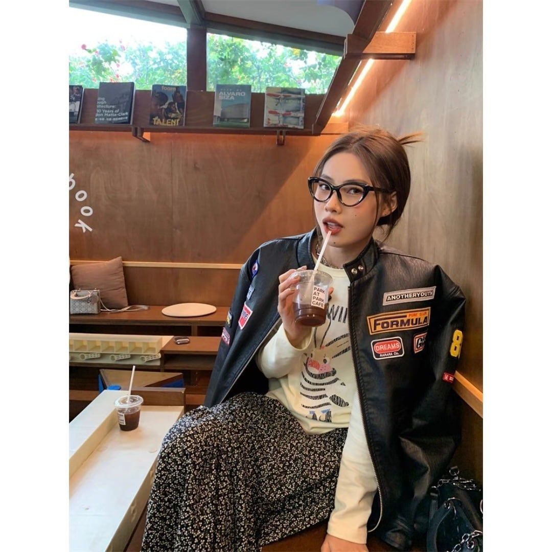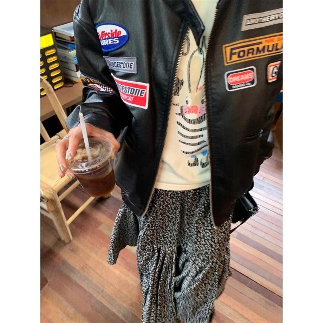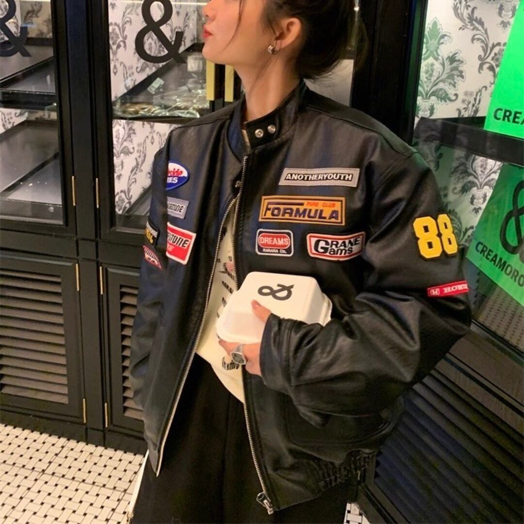 LUOLUOJUANJIE ワッペン スポーツ シングル レザージャケット