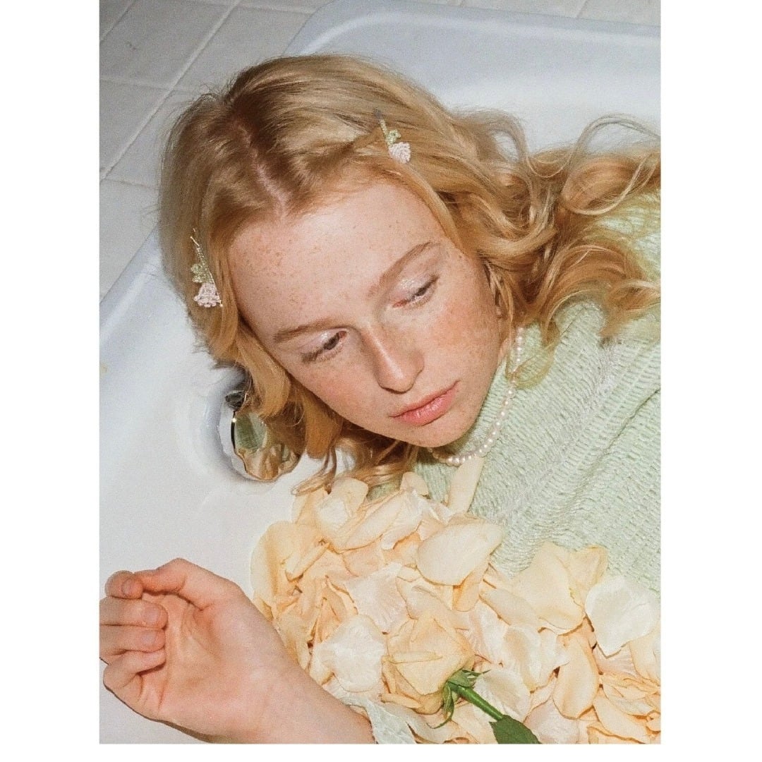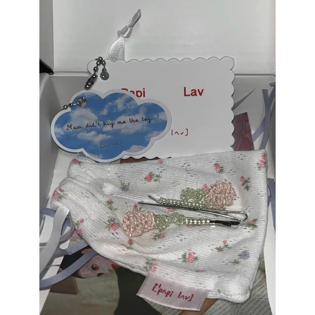 Papi Lav オリジナル ピンクローズ ビーズ パステルカラー ヘアピン