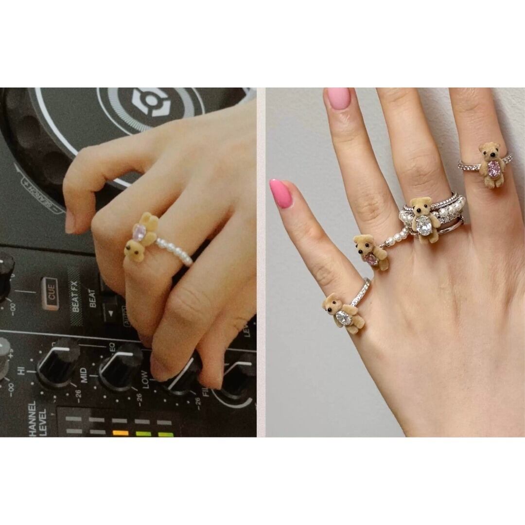 ■Design:テディベア ジルコニア シルバー925 リング 指輪 パール