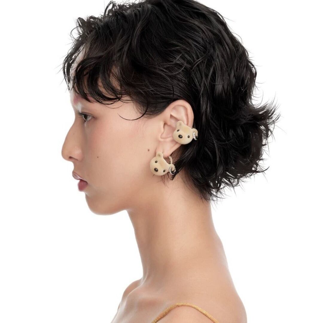 YVMIN テディベア ヘッド ジルコニア イヤリング ピアス シルバー