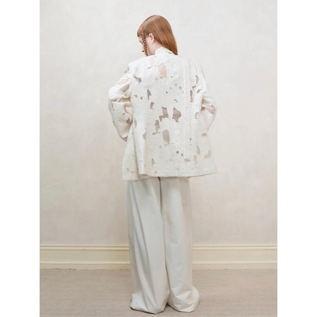 AnnoMundi ジャガード シアーレース ノーカラージャケット スカーフ付き