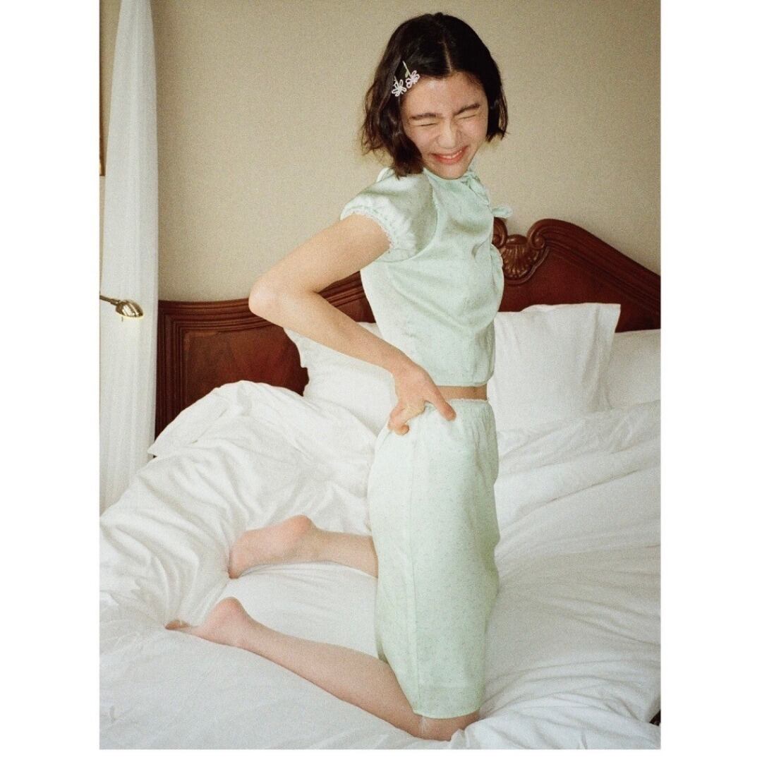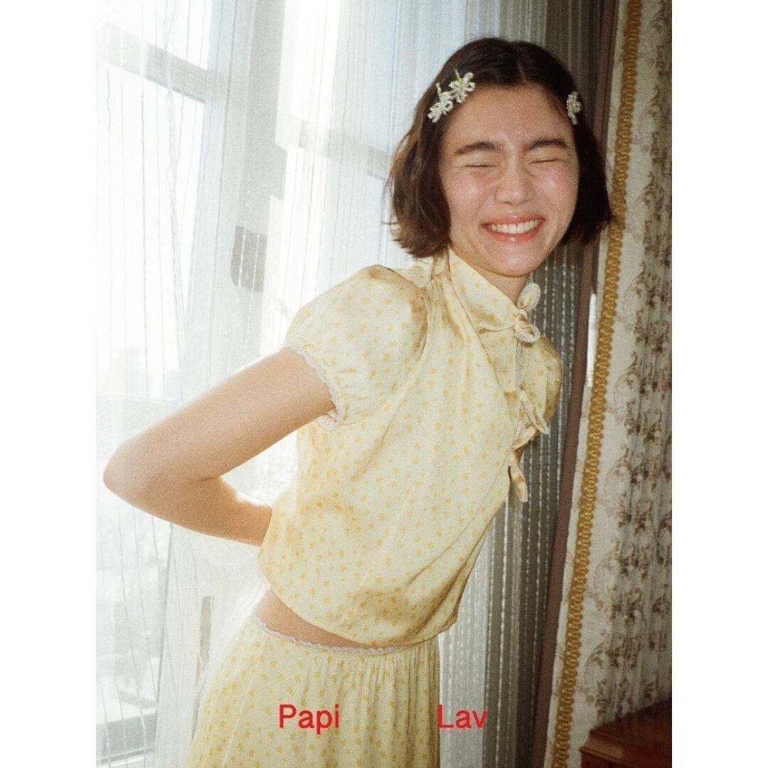Papi Lav プリント アンバー パフスリーブ チャイナブラウス トップス