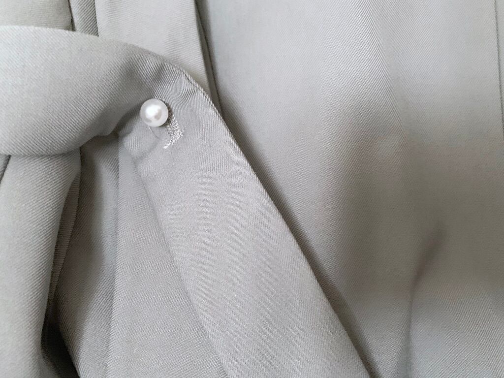 一枚で主役になるインパクトのあるデザインで、ビーズの飾りや見頃の変形デザインがアクセントに。